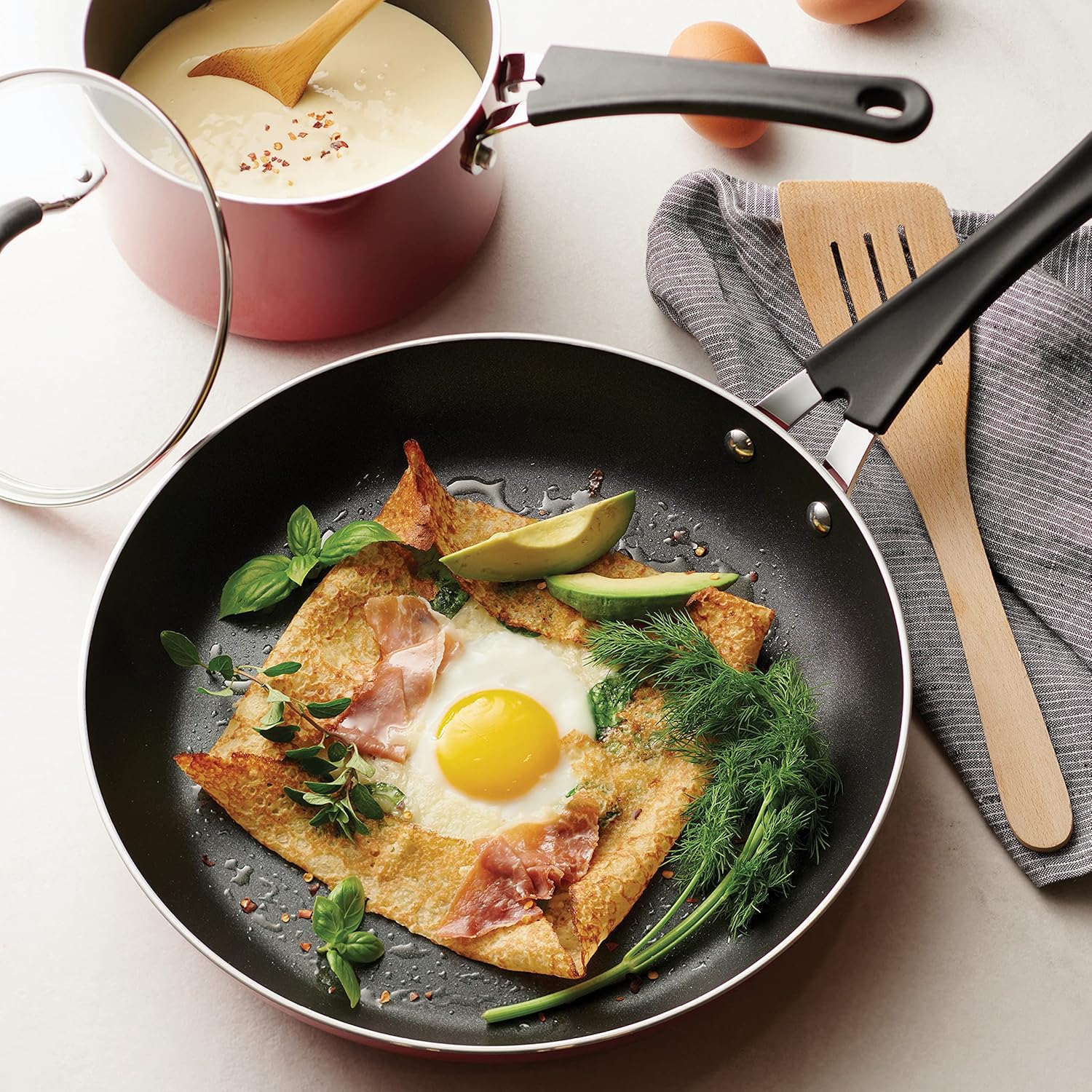 Safe for gas, electric, and ceramic glass stovetops, this cookware set can also go in the oven up to 350°F. Whether you're preparing a quick breakfast or a multi-course dinner, this set brings style and functionality to your kitchen routine.