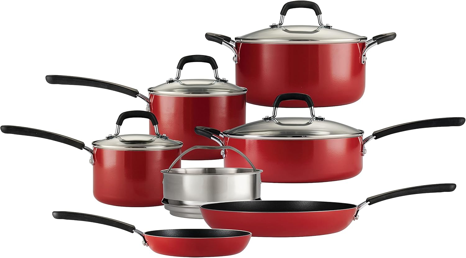 Cookware Set W/Lids 11-Piece Non Stick Pots and Pans Set-Red