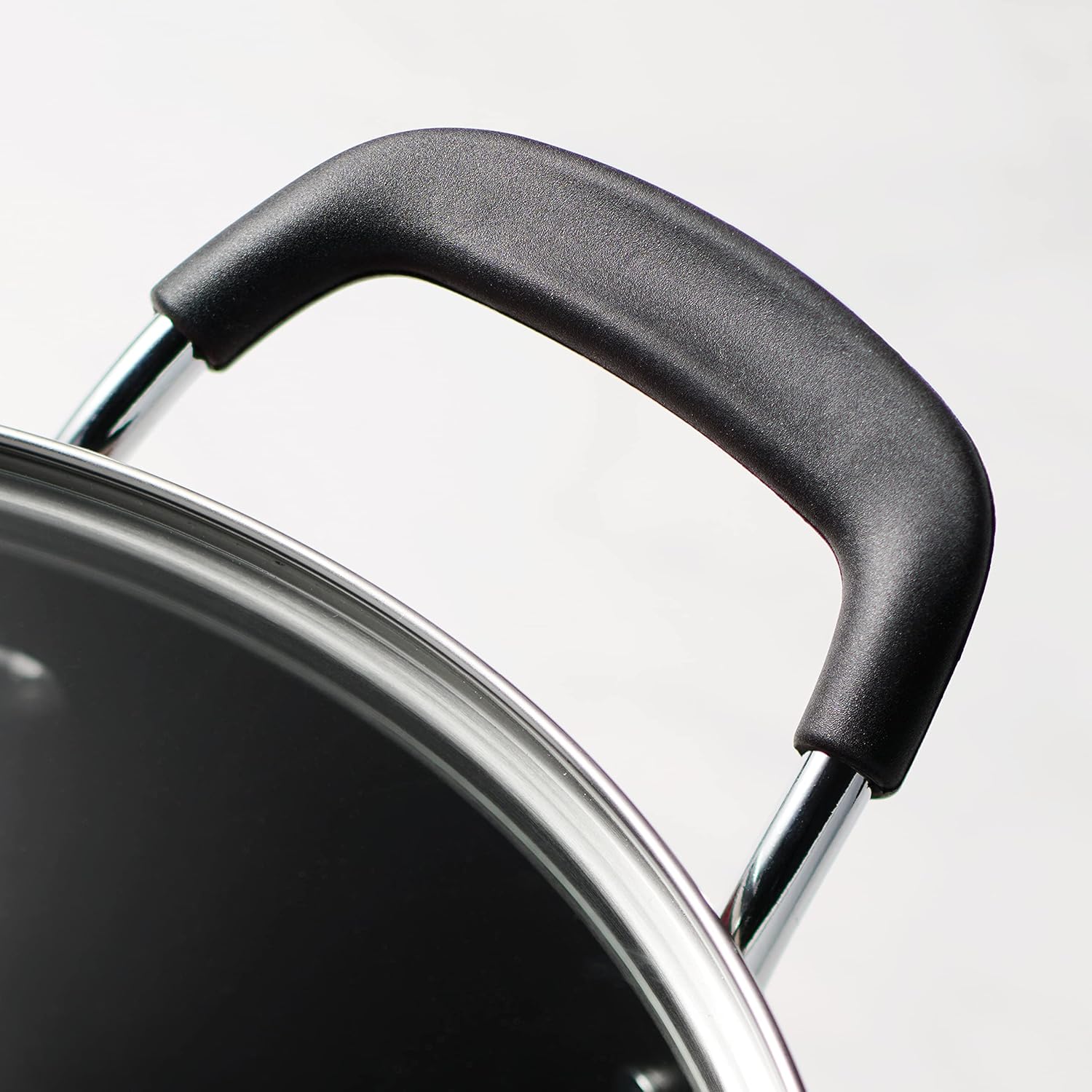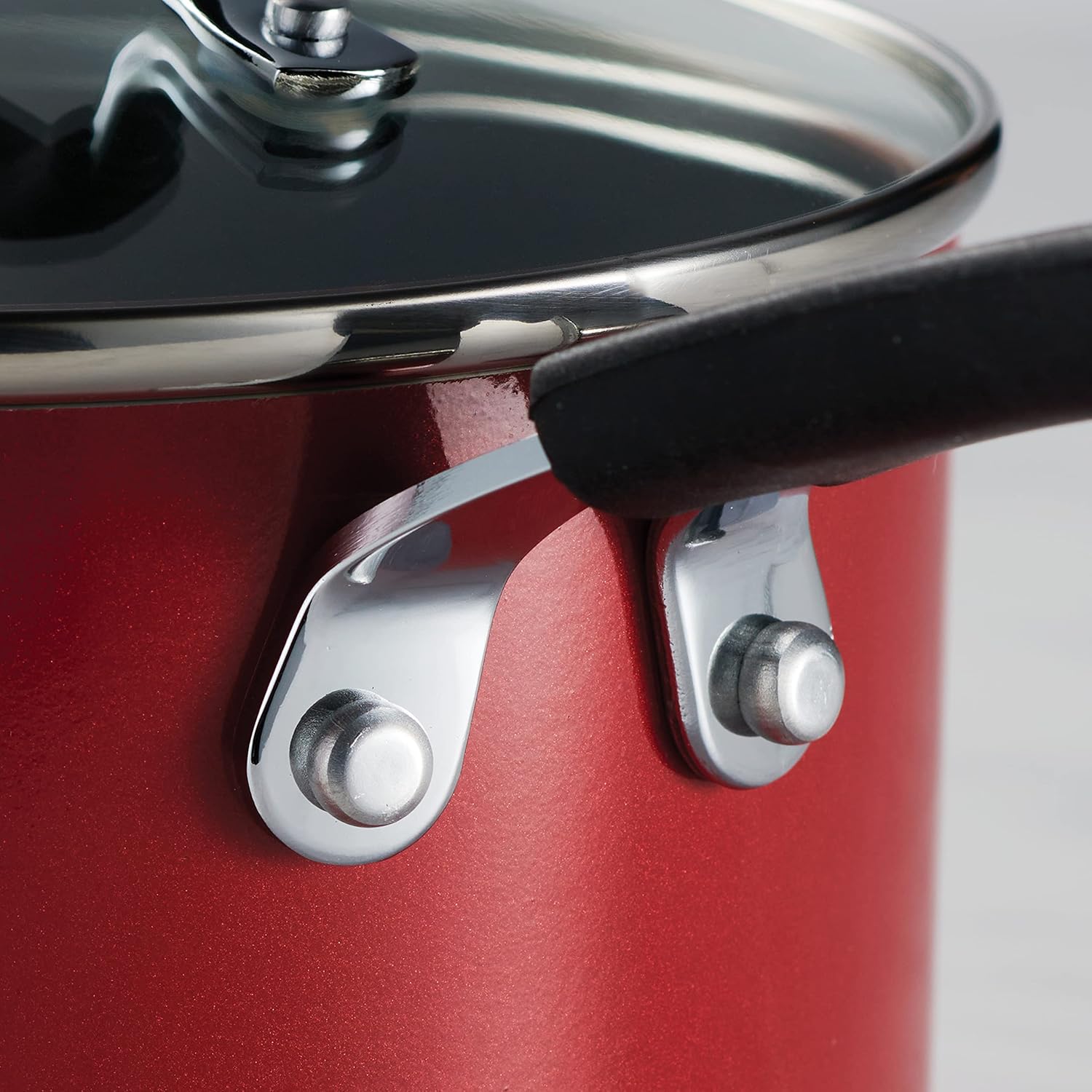 Each piece features a reinforced nonstick interior made without PFOA, lead, or cadmium, so you can cook healthier meals with less oil and enjoy effortless food release. The cookware is dishwasher-safe, making cleanup quick and hassle-free. The set also includes shatter-resistant tempered glass lids so you can keep an eye on your food, while the soft-grip, stay-cool silicone handles are riveted for added strength and comfortable handling.