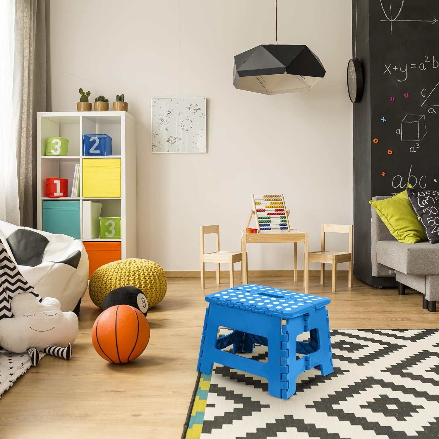 Foldable Step 9"H Plastic Anti-skid Design Portable Stool, Blue