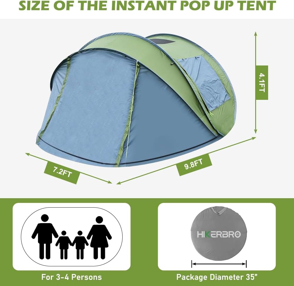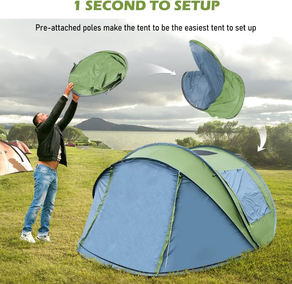 Instant Pop Up Tent 2 Doors & Windows 4 Person Camping Tents