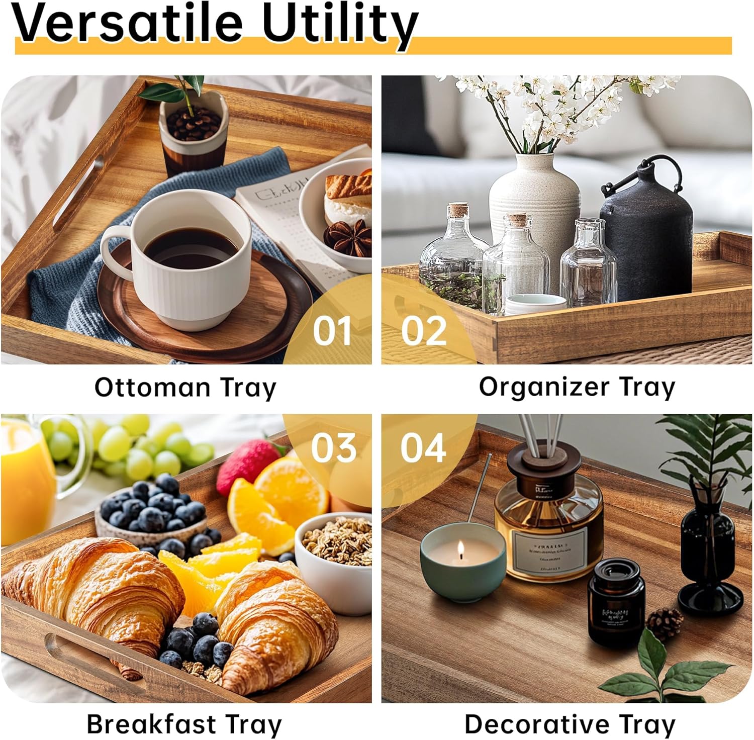 • Perfect for serving breakfast, snacks, drinks, or as an ottoman tray