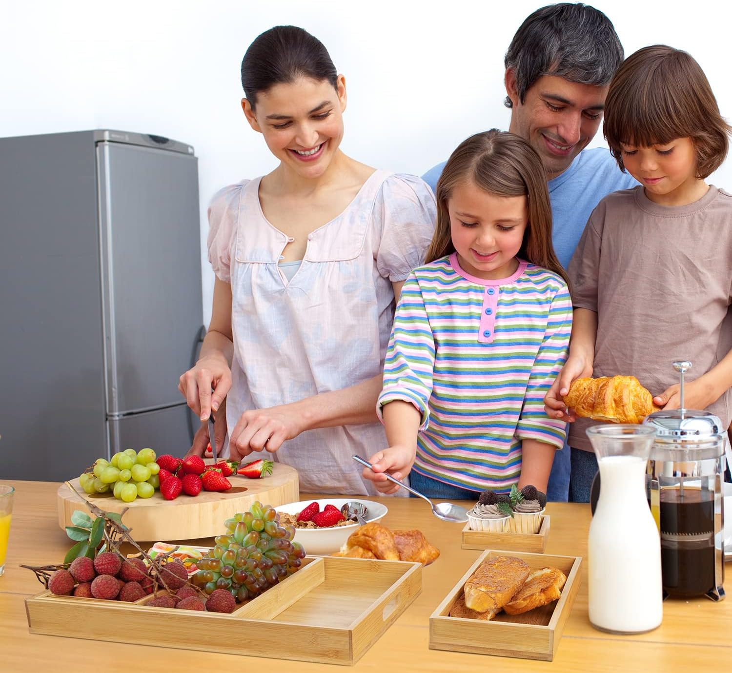 Wooden Serving Trays W/Handle Rectangular Bamboo Tray, Set of 7