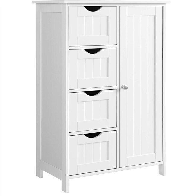 The floor cabinet storage with four drawers and a big cupboard. You can put in clothes, books in the drawers, bigger and higher things such as kitchen sets, wine in cupboard .You can choose it for bedroom, bathroom, kitchen and other occasions.
