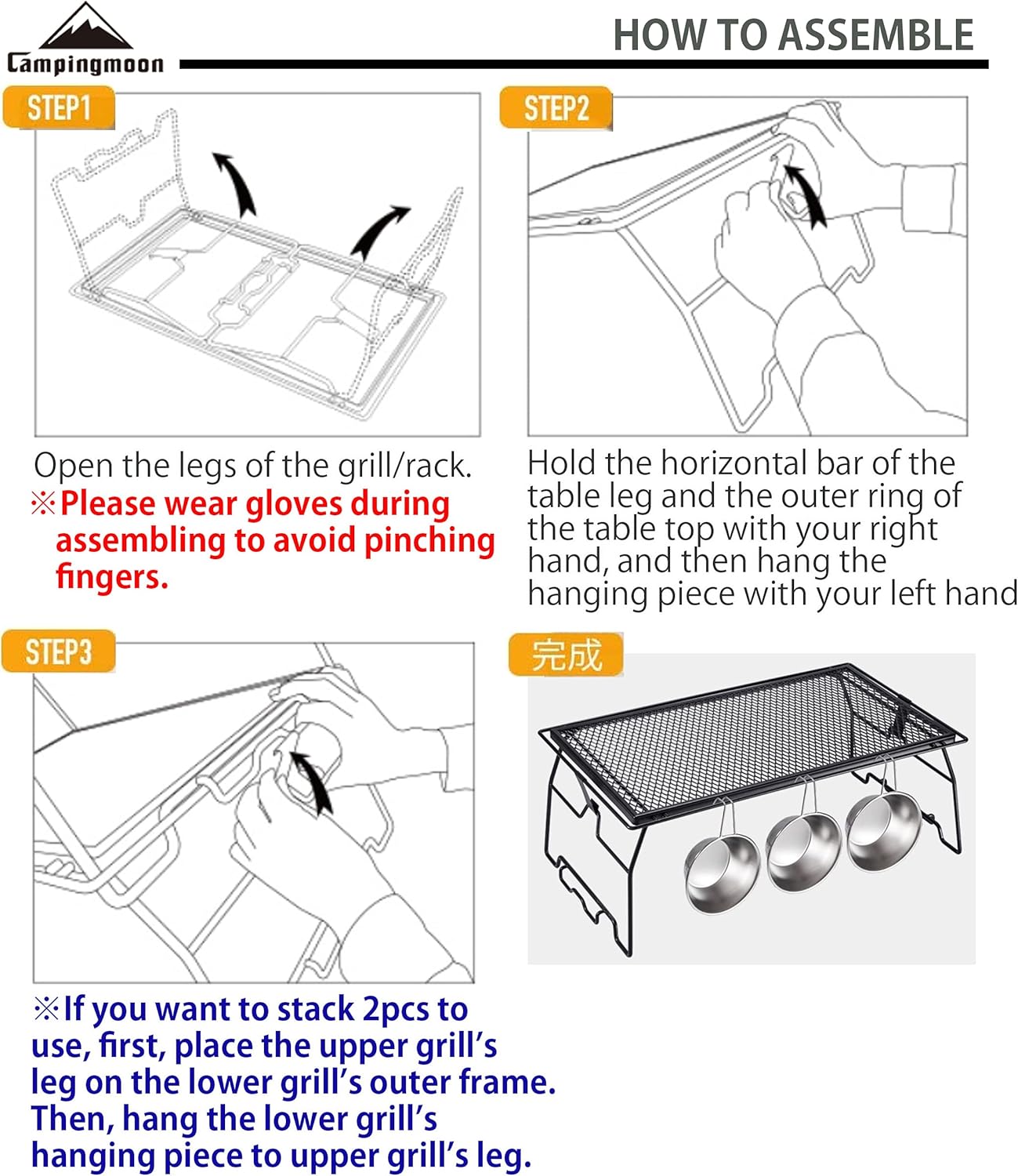 Campfire Grill Storage Rack Steel Foldable Stackable Grill, 1pcs