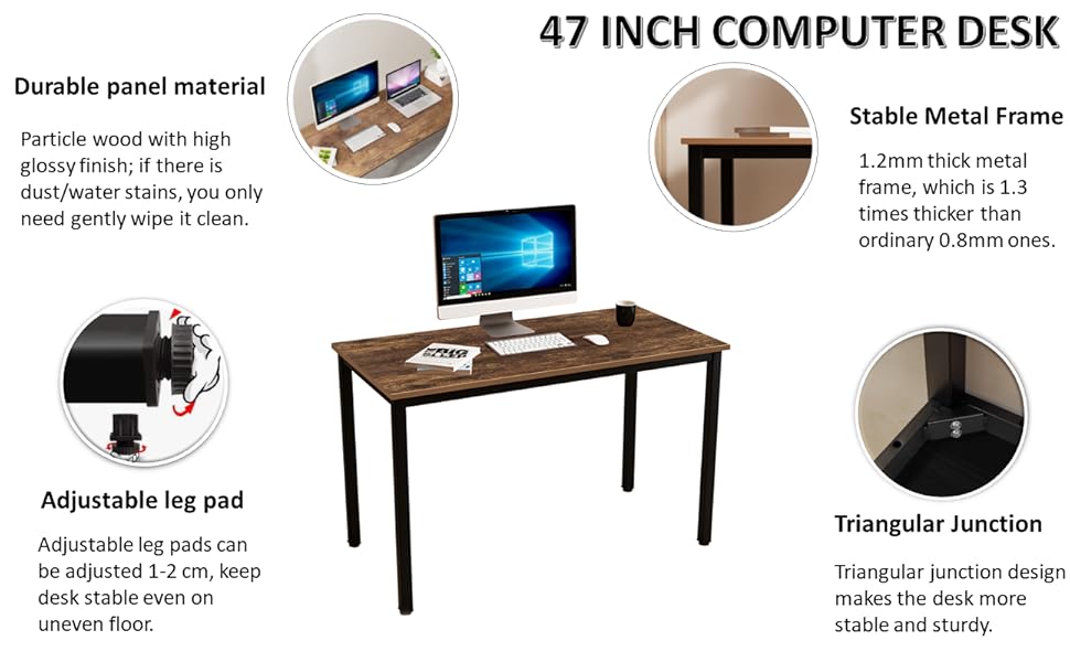 Computer Desk 47" Table Study Home Office Gaming Desk, Brown