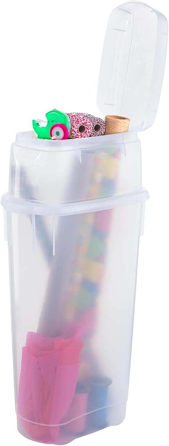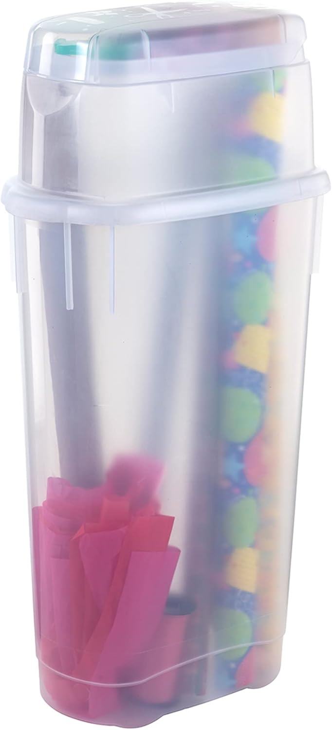 Container Wrapping Paper Organizer W/ Top Ornament Storage, Clear