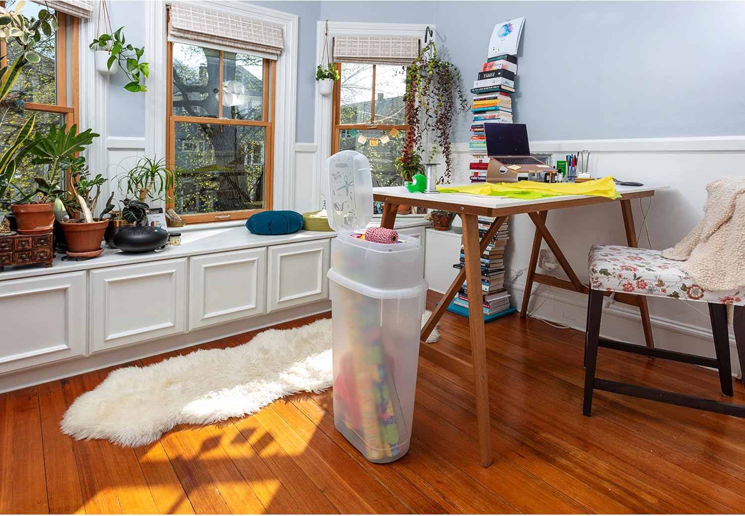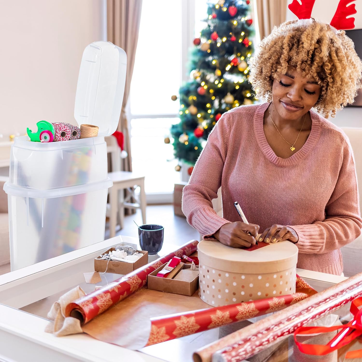 Made from durable plastic, this storage container protects your supplies from damage season after season. The clear, semi-transparent exterior allows you to quickly identify the contents without opening the container, making holiday preparations even more efficient. With its compact yet spacious design, this wrapping paper storage container is a must-have for keeping your holiday essentials organized.