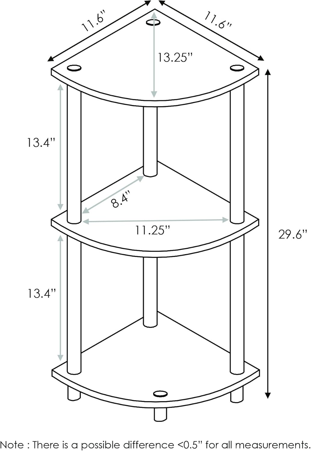 Maximize your space without sacrificing style with this elegant corner bookcase unit. Designed with both form and function in mind, this sleek piece fits neatly into any corner, making it perfect for smaller rooms or adding dimension to larger spaces. The three-beam frame provides sturdy support while the wood-style shelves bring a warm, classic touch to your decor.