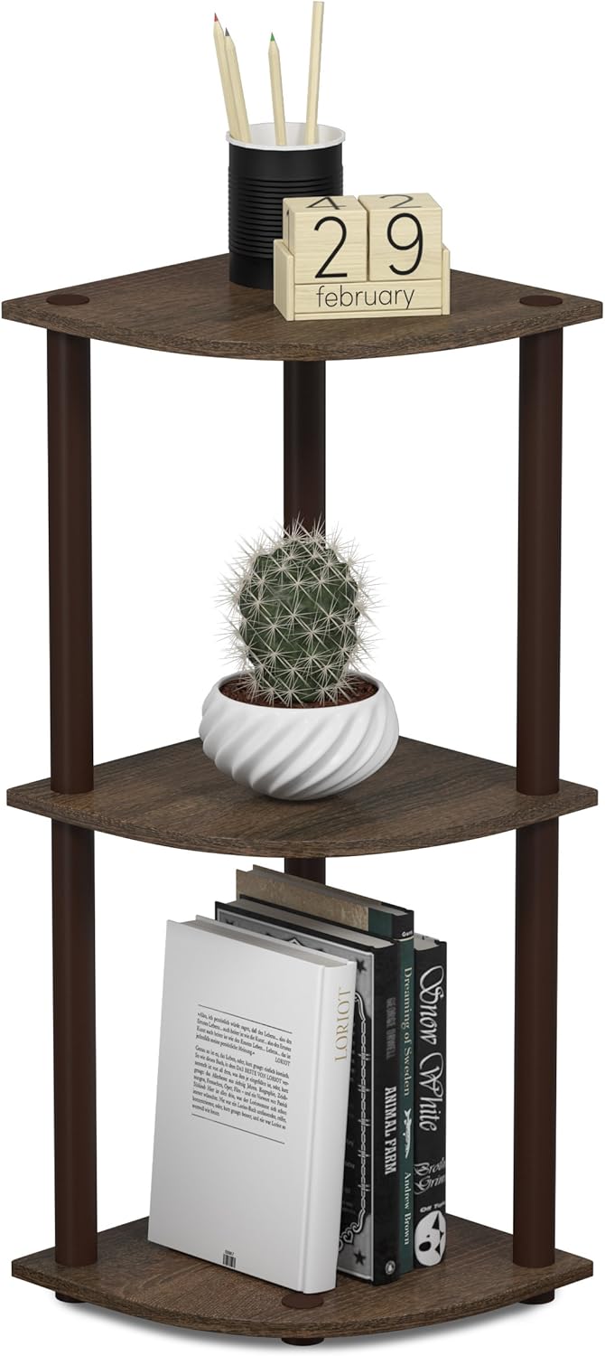 Corner Display Rack 3-Tier Decor Multipurpose Shelving Unit-Brown