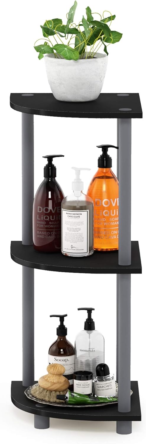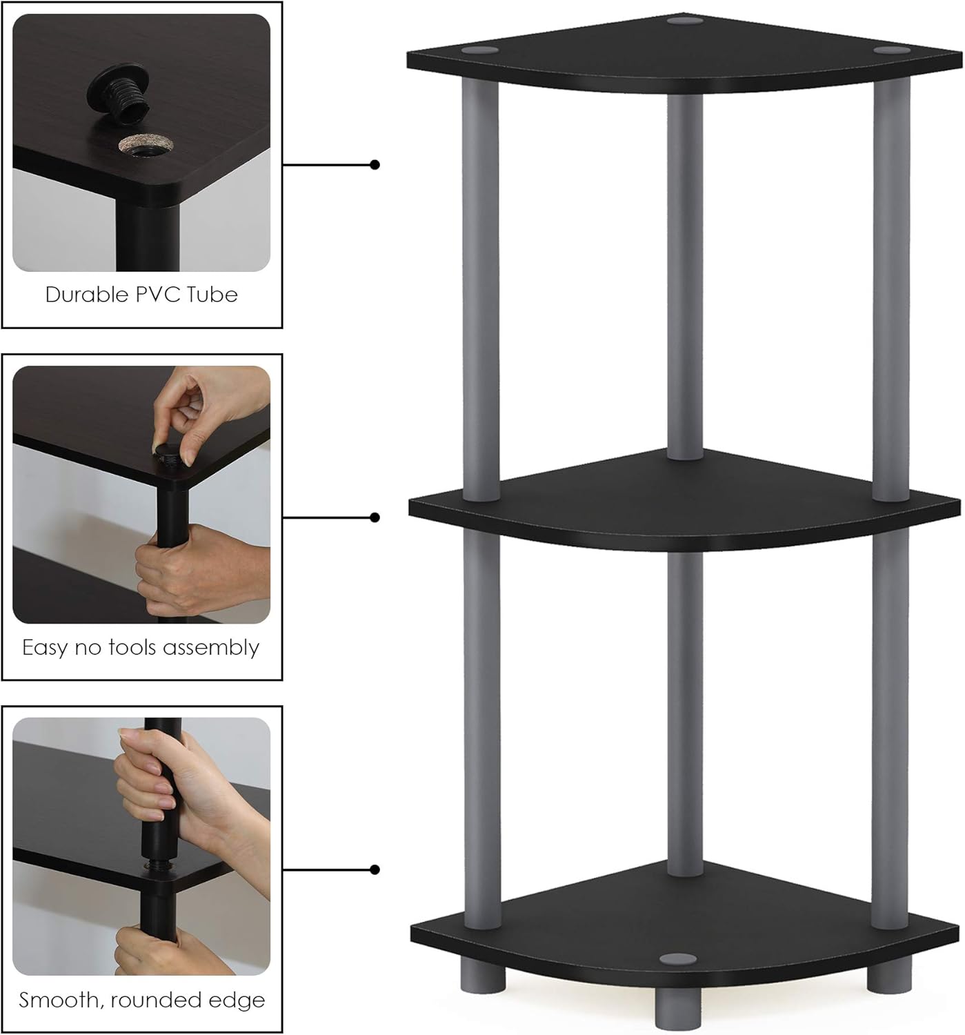 Corner Display Rack 3-Tier Multipurpose Shelving Unit-Black/Gray