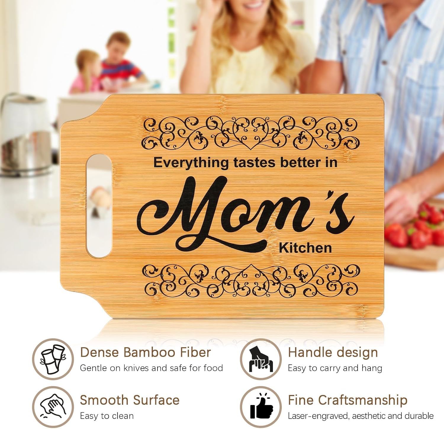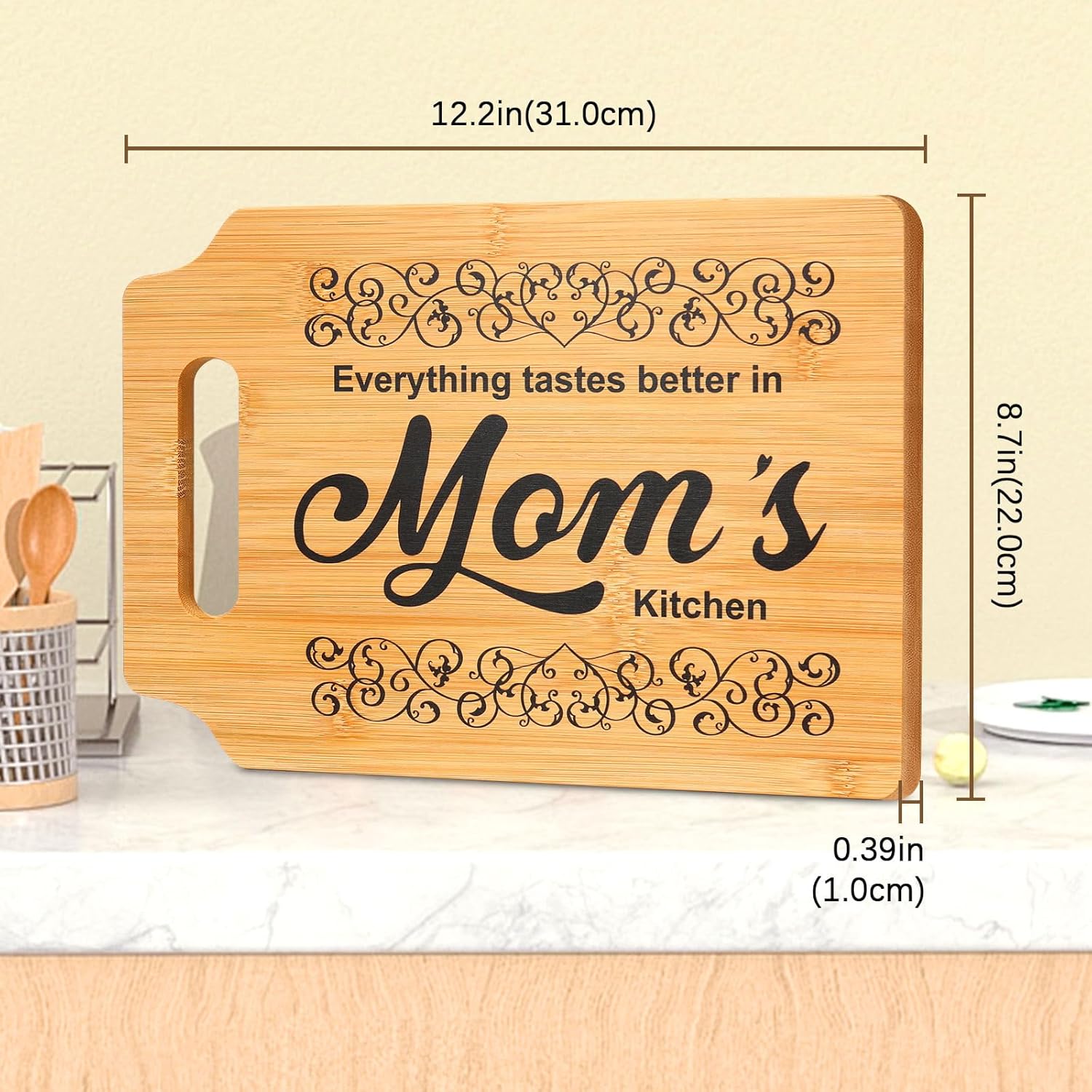 Show your mom just how much she means to you with this heartfelt bamboo cutting board, beautifully printed with touching quotes. Whether it’s for Mother’s Day, her birthday, or simply a surprise to express your love, this gift blends practicality with deep sentiment. Every glance at this board will remind her of the bond you share and the appreciation you hold for her.