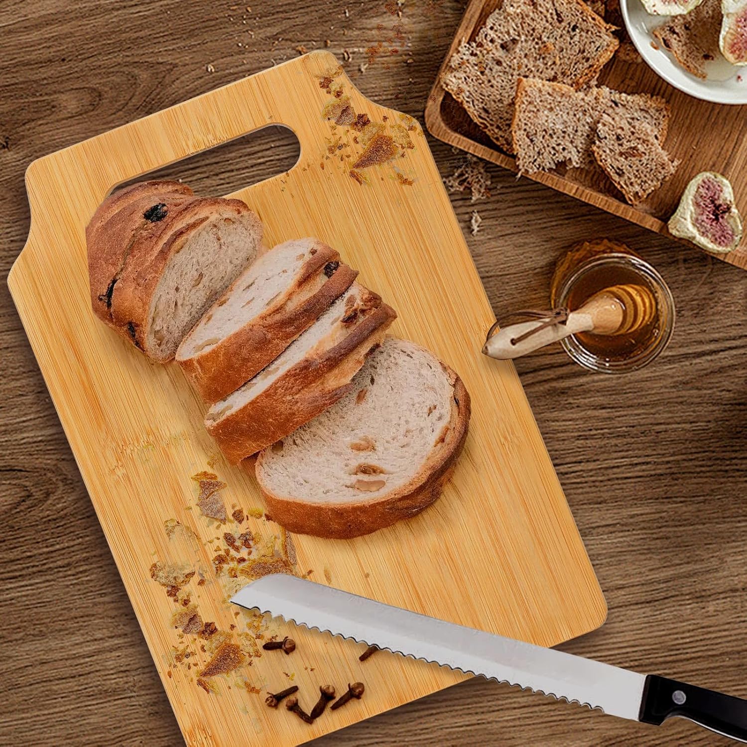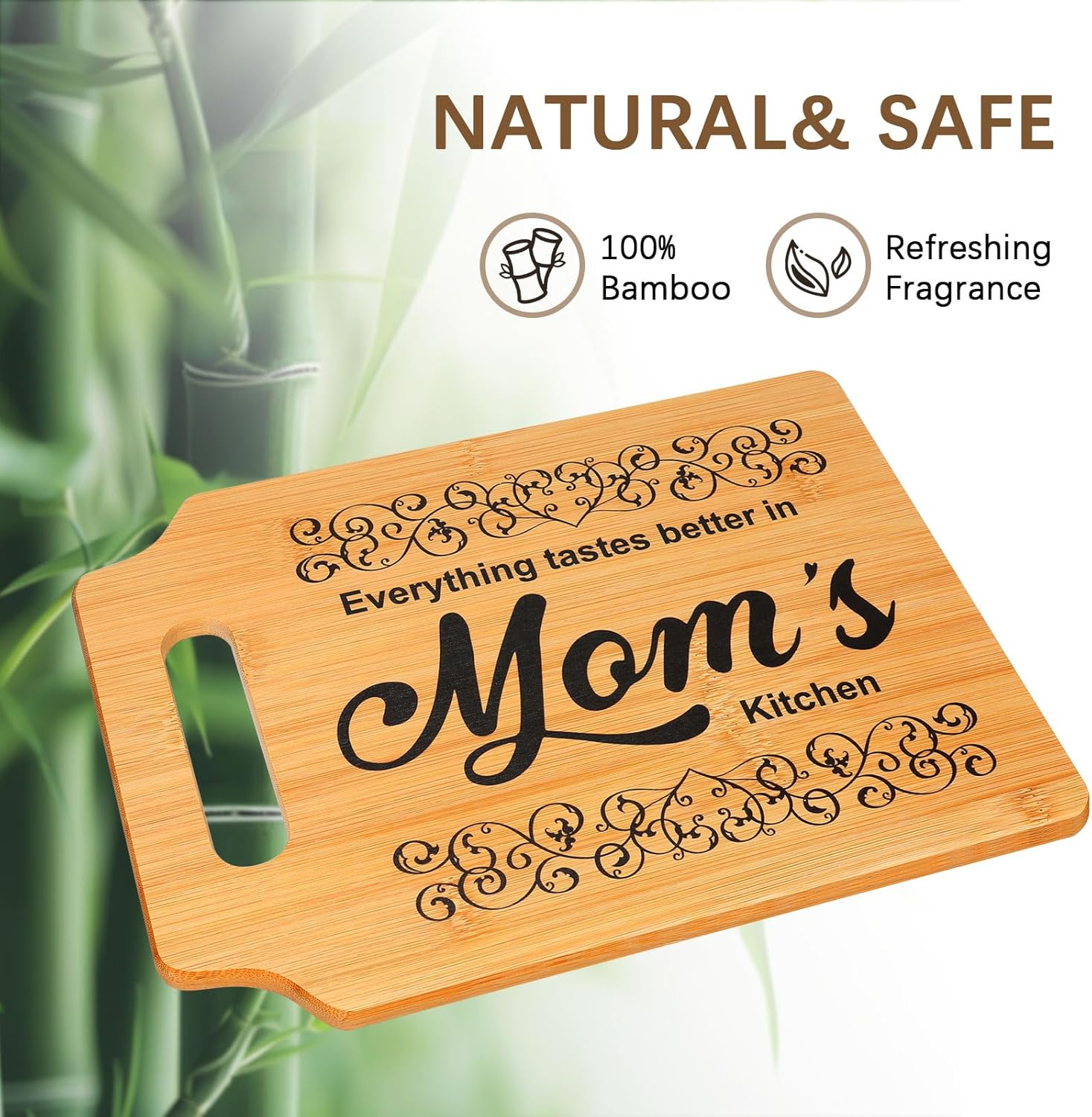 Crafted from 100% natural bamboo, each cutting board has its own unique texture, making every piece one-of-a-kind. It’s not only eco-friendly and safe for daily use but also doubles as a charming decorative piece in any kitchen. With a size of 12.2 x 8.6 inches and a convenient handle, it’s designed for both functionality and style.