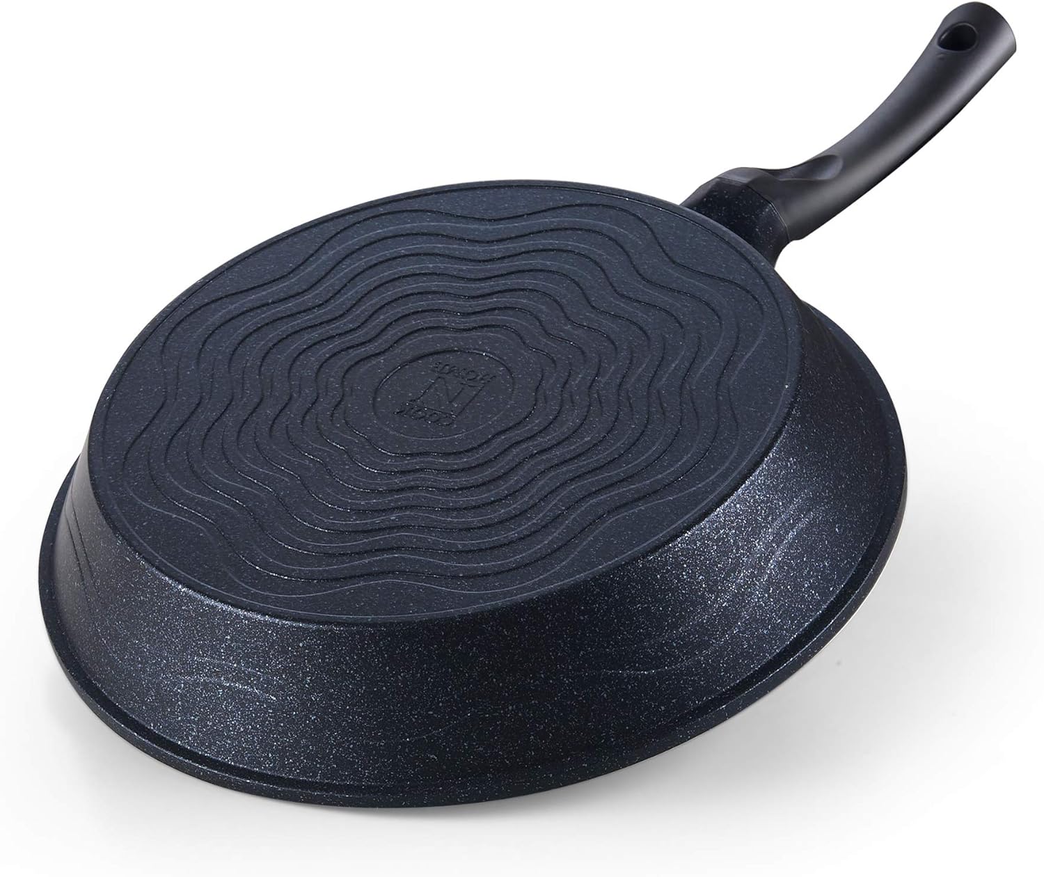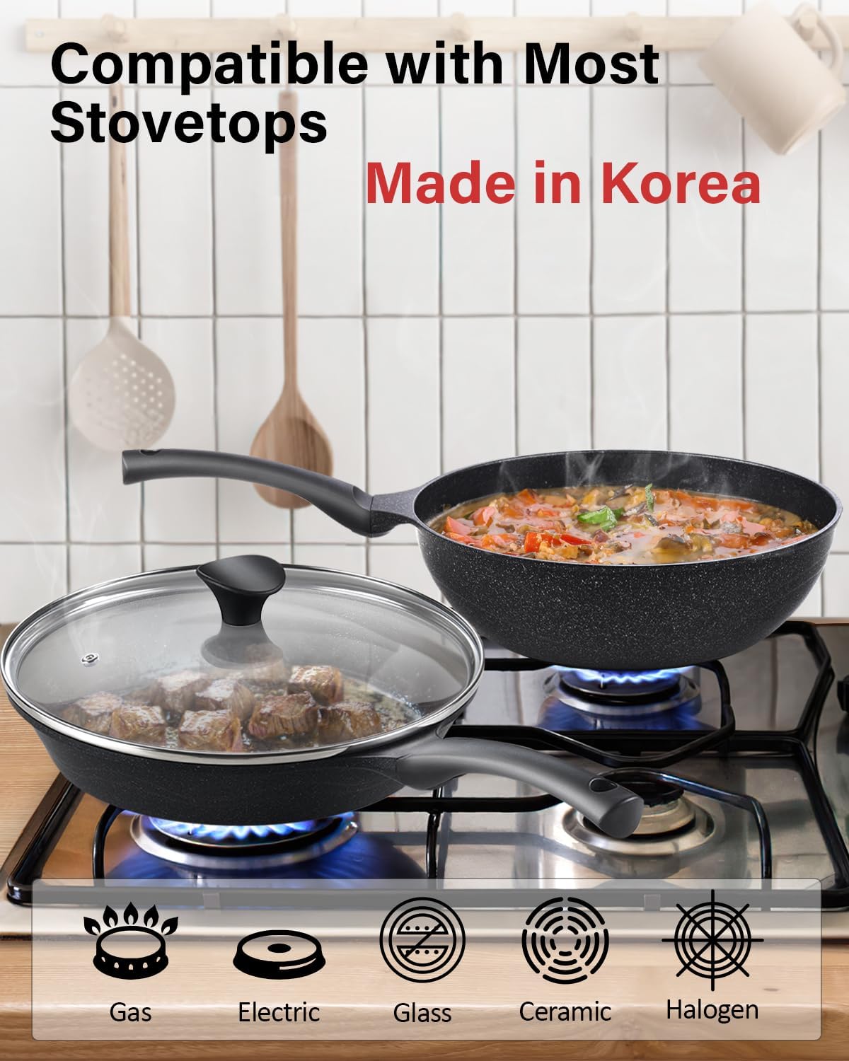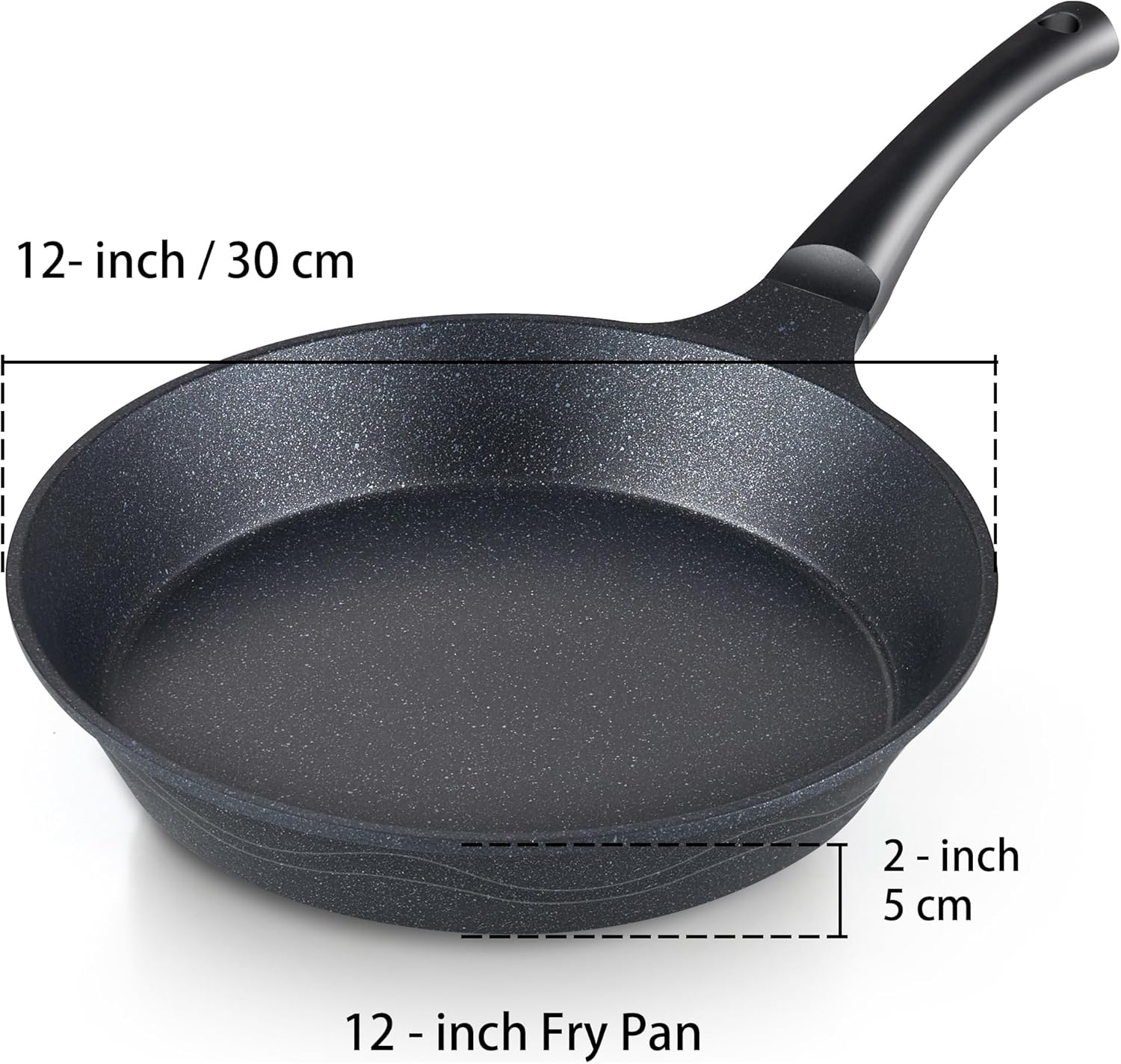 Fry Pan Marble Nonstick Cookware Sauté Pan with Lid, 12" - Black