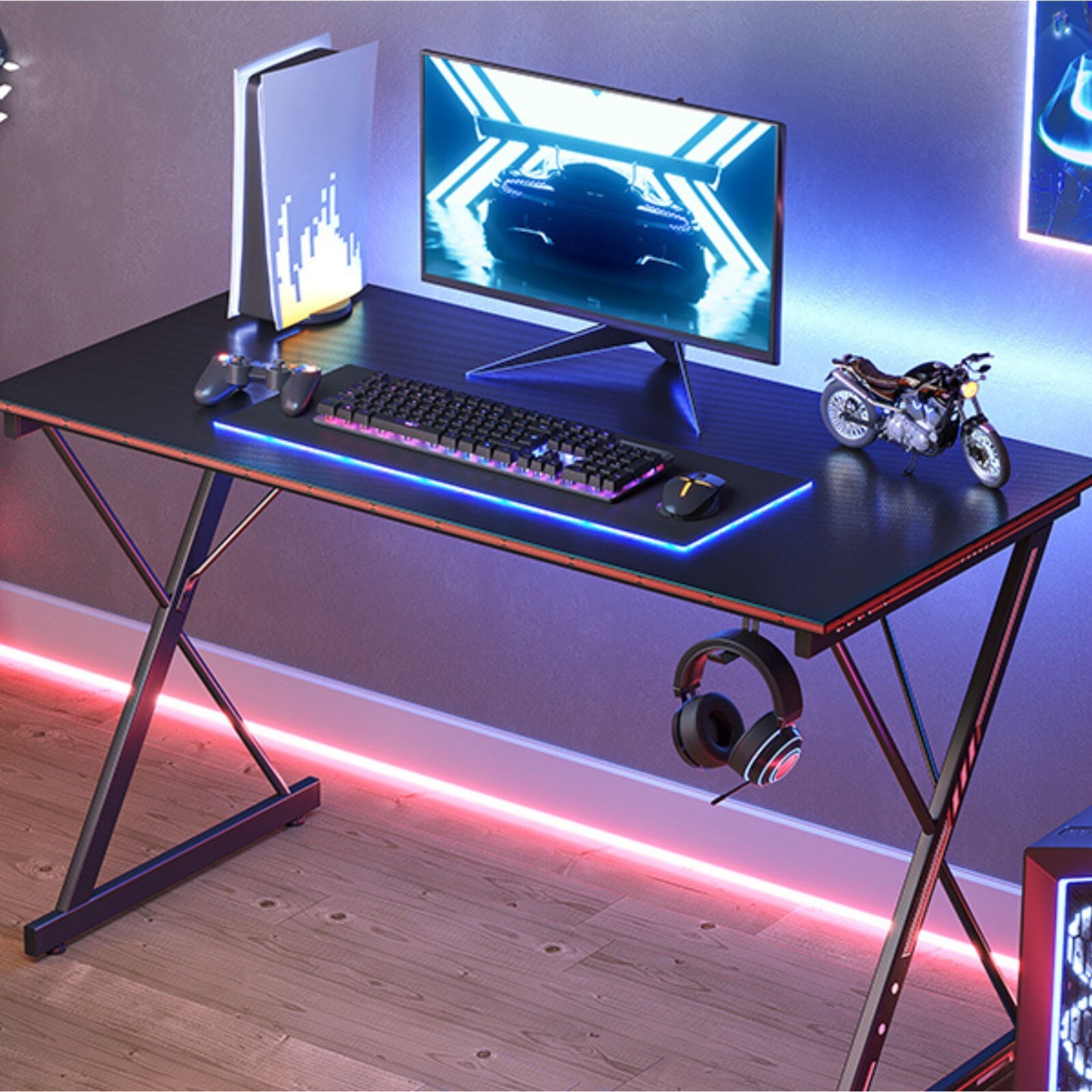 The X-shaped leg design enhances stability, making it sturdier than regular desks, even on uneven surfaces, thanks to adjustable foot pads. Assembling the desk is a breeze, with the option to follow the manual or refer to the installation video on the page. Additionally, the desk's surface is both safe and durable, featuring a carbon fiber structure that is easy to clean, creating the perfect gaming atmosphere.
