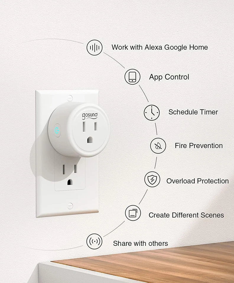 Upgrade your home with the Gosund Smart Plug, granting you unparalleled control over your appliances from anywhere using your smartphone. Illuminate your space before you arrive, bid farewell to stumbling into darkness. With compatibility with Alexa and Google Home, enjoy effortless voice control, ideal for busy households and individuals needing assistance.