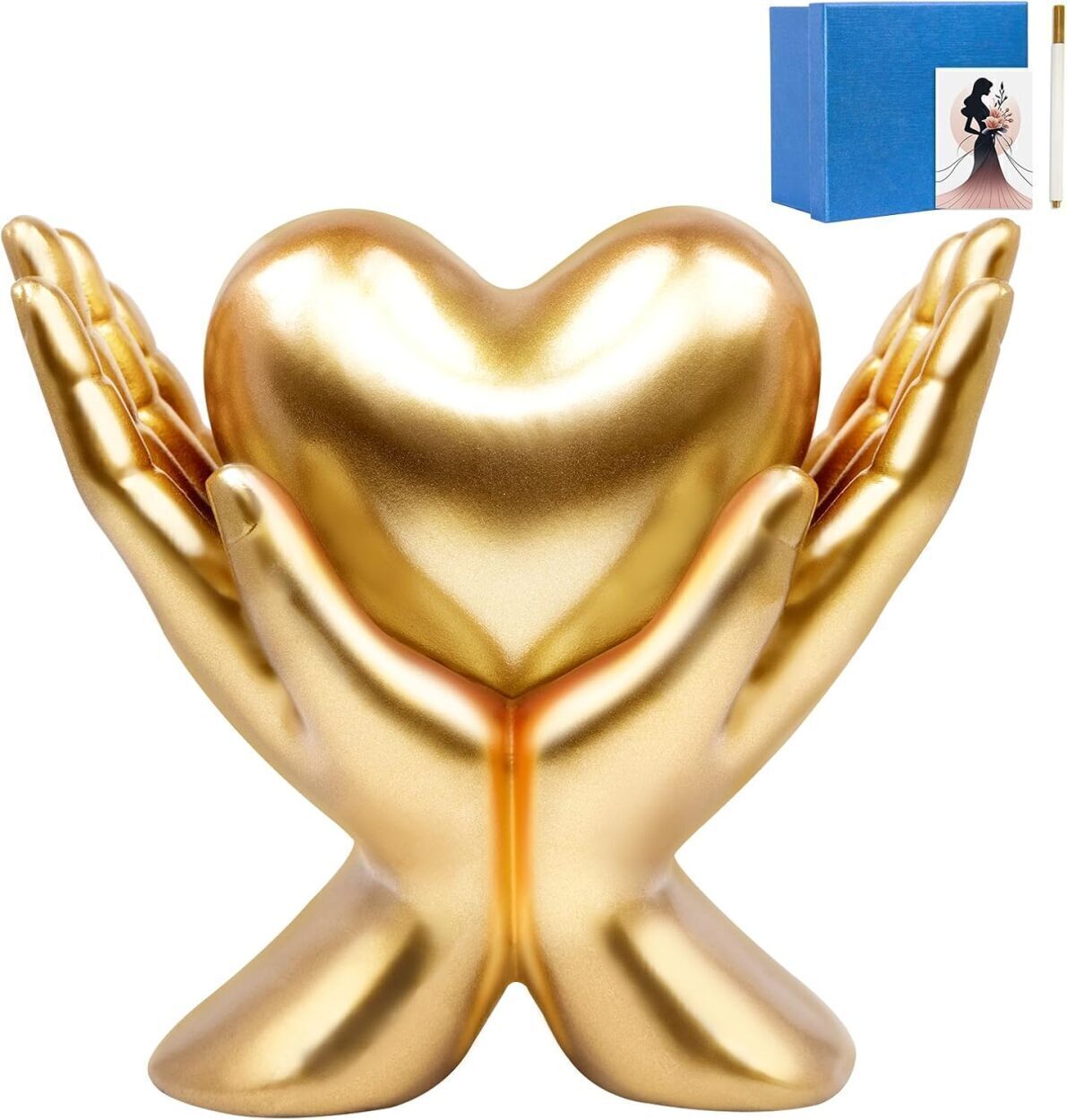 Add a touch of elegance and warmth to your home with this Golden Heart Hand Sculpture. Designed to symbolize love and care, this beautiful decorative piece features a luxurious gold finish that fits seamlessly into any décor style, from modern to eclectic. Perfect for showcasing on shelves, coffee tables, or as a centerpiece, it adds charm and sophistication to any space. Whether you're looking for a meaningful gift or a timeless addition to your own home, this sculpture is a versatile accent that exudes love and elegance.