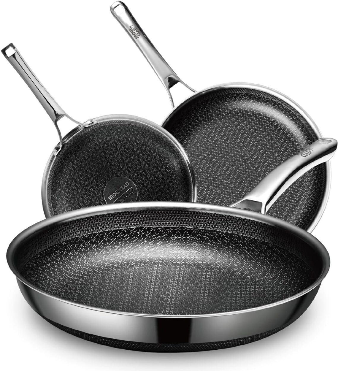 Hybrid Pans Set Nonstick 3 Piece Stainless Steel Set, 8",10"&12"