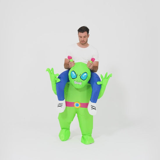 Turn heads and spread laughter this Halloween with the hilarious Inflatable Riding Alien Costume! Designed for adults and teens, this blow-up alien suit creates the illusion of being carried away by a friendly (or mischievous) alien, making it the ultimate attention-grabber for parties, parades, and trick-or-treating. It’s guaranteed to boost the fun factor at any spooky celebration.