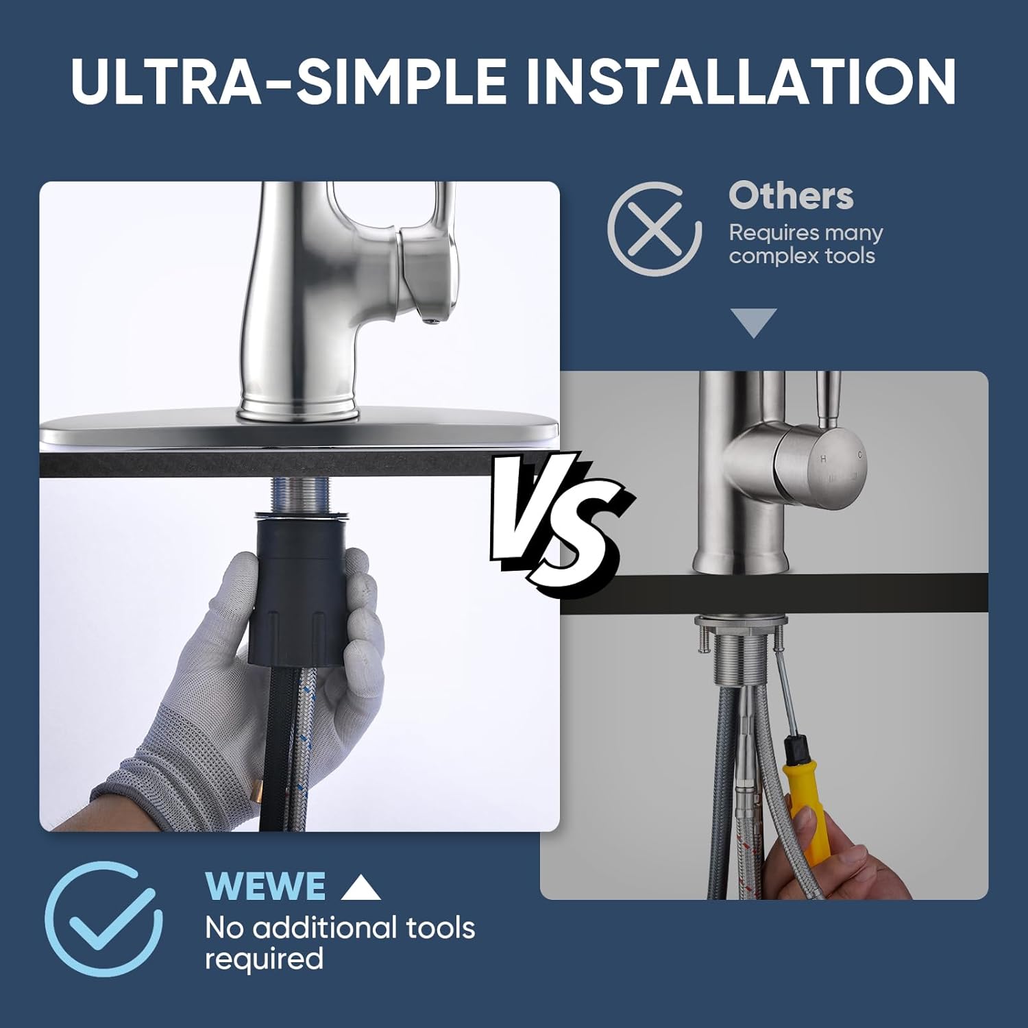 This faucet is easy to install with a user-friendly, all-in-one system that allows DIY setup in less than 30 minutes—no plumbing experience required! The integrated single handle enables precise control of water pressure and temperature, while the touch feature offers three modes: STREAM for filling, SPRAY for gentle rinsing, and SWEEP for powerful, blade-like water flow to clean dishes effortlessly.