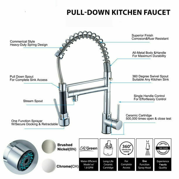 Kitchen Sink Faucet Swivel Single Handle Pull Down Sprayer Mixer Tap