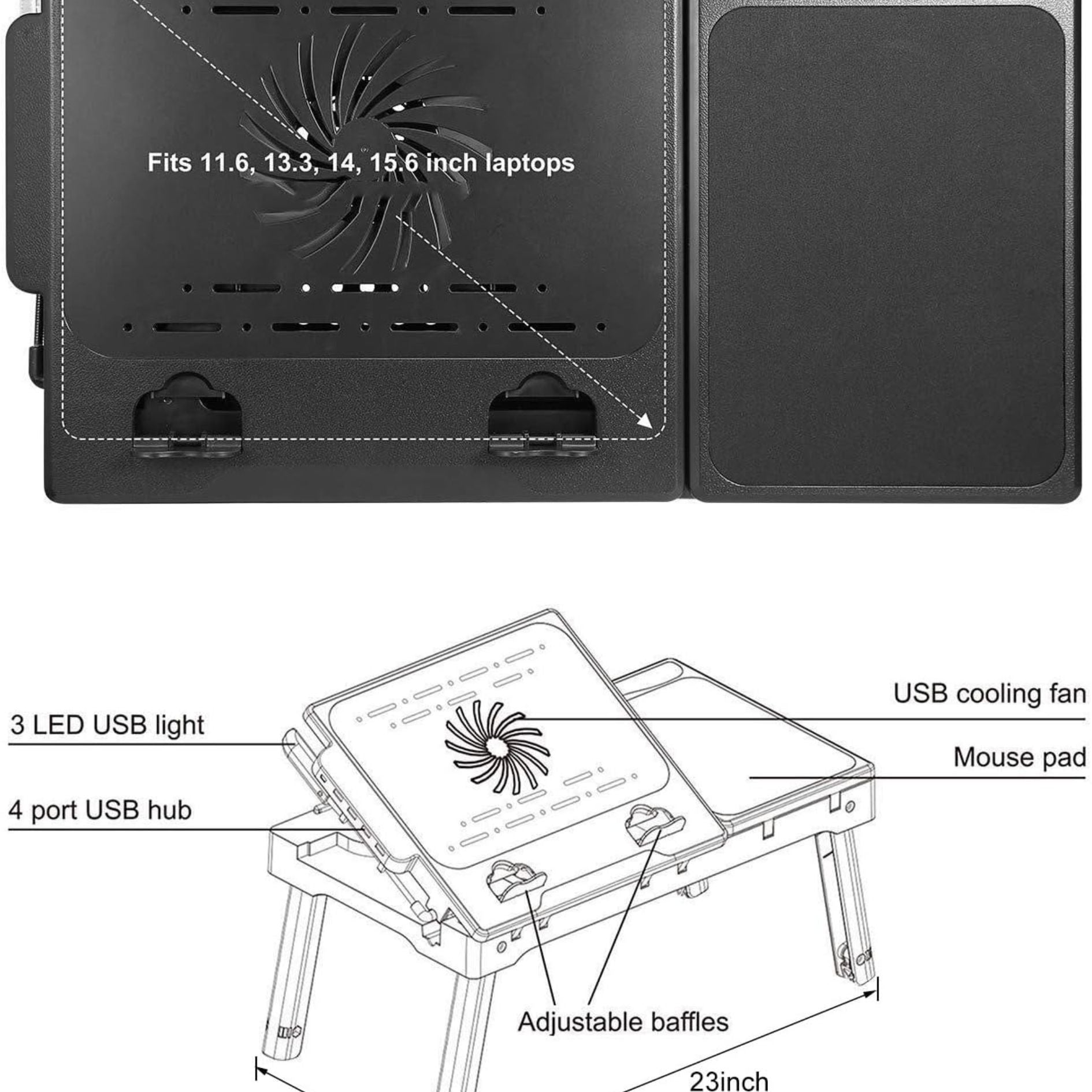 Laptop Desk Foldable W/Cooling Fan USB Hub LED Light Stand Table