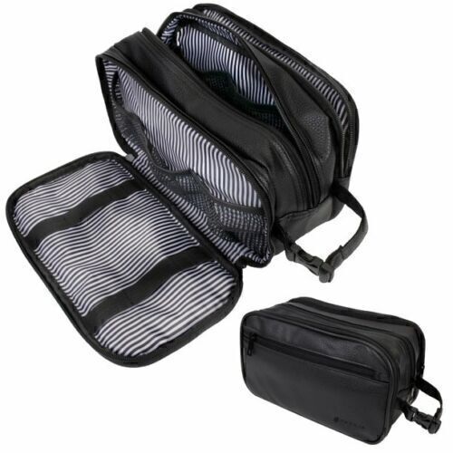 Leather Travel Bag Water-Resistant with Clip-on Buckles Toiletry Bag