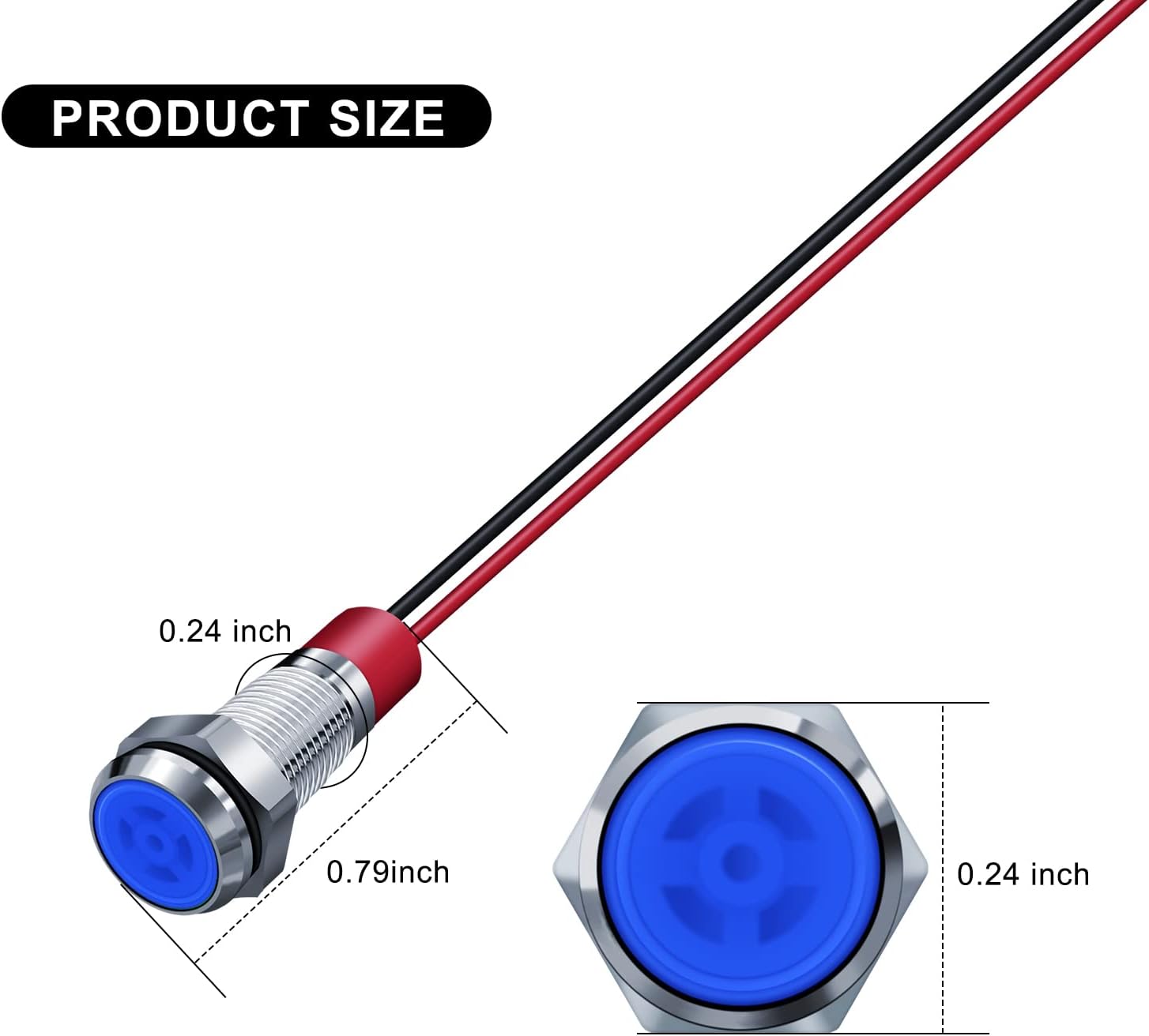 LED Indicator Light 6MM 1/4" Lamp 12-24V LED Light, Blue-10PCS