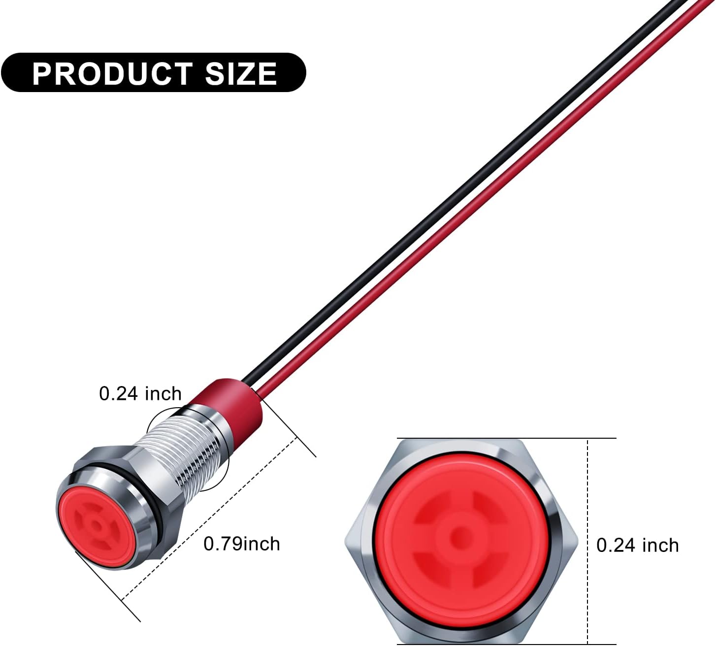 LED Indicator Light 6MM 1/4" Lamp 12-24V LED Light, Red-10PCS