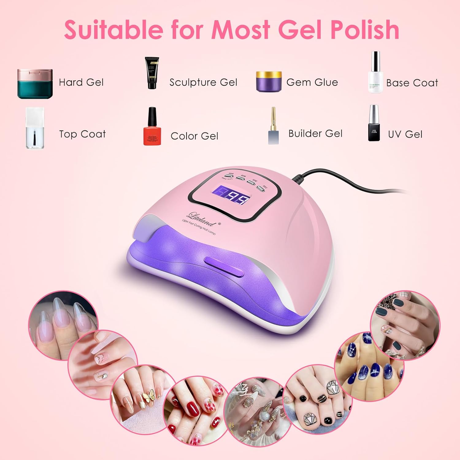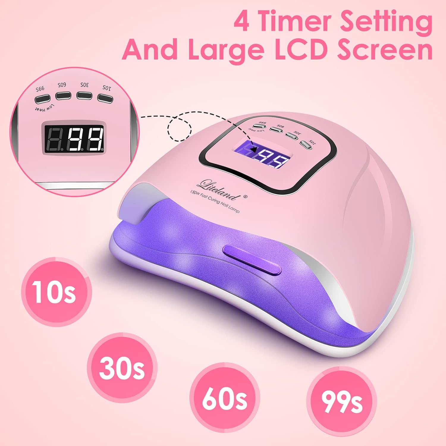 Liteland Drying Nail 150W LED Nail Lamp Gel Polish Curing, Pink
