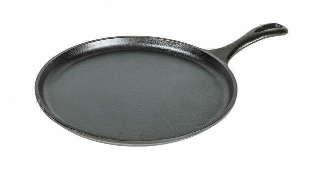 Whether used in a kitchen or camp, theses virtually indestructible cookware should last for generations. Made of cast iron, this griddle evenly distributes heat from the bottom through the sidewalls. Sporting a stylish black color, the cast iron cookware looks good in most kitchens and it doubles up as an excellent source of nutritional iron. Measures 10.5-inches diameter and .5-inches deep.