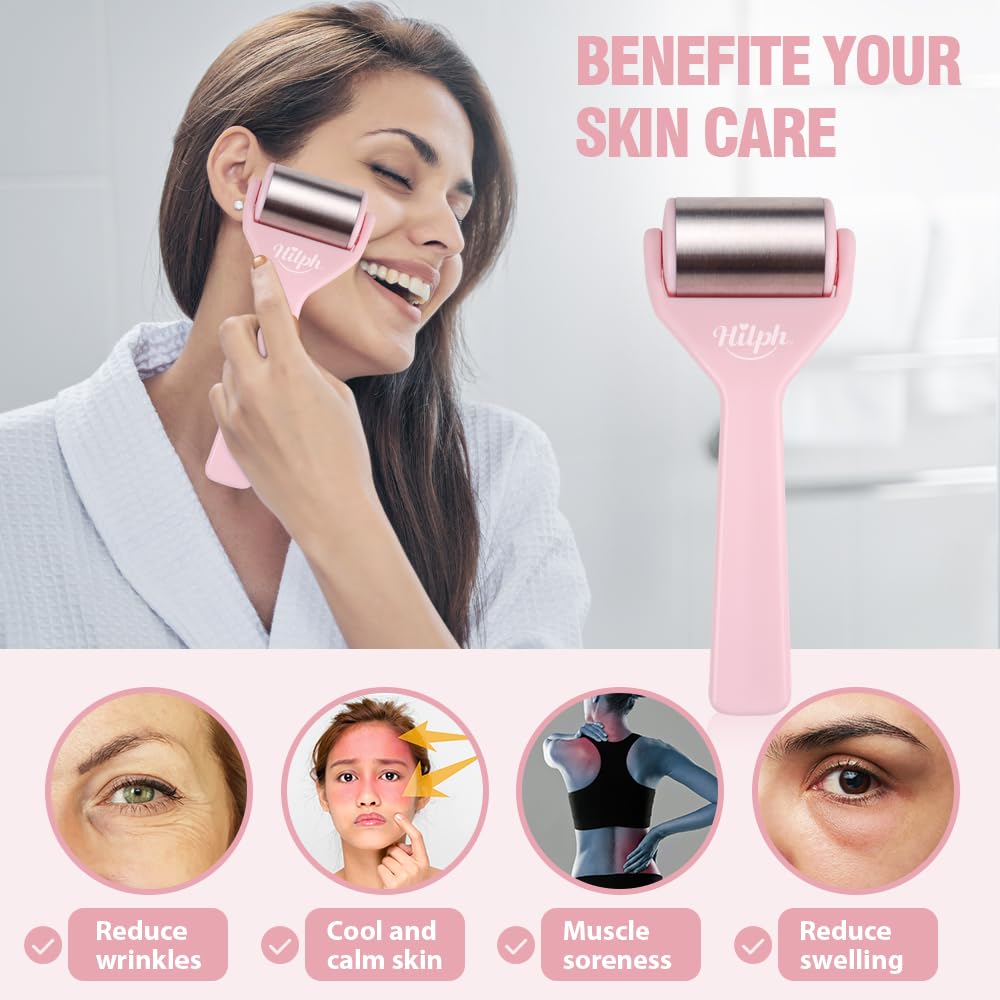 Refresh and rejuvenate your skin with the Hilph Stainless Steel Ice Roller, designed to reduce puffiness, tighten pores, and soothe tired skin. By gently gliding the frozen roller across your face and eyes, it promotes healthy blood circulation and helps relieve puffiness, dark circles, and under-eye bags caused by lack of sleep. Perfect for morning routines or evening relaxation, it can also be used on temples, forehead, eyes, and neck to relieve tension and calm soreness.