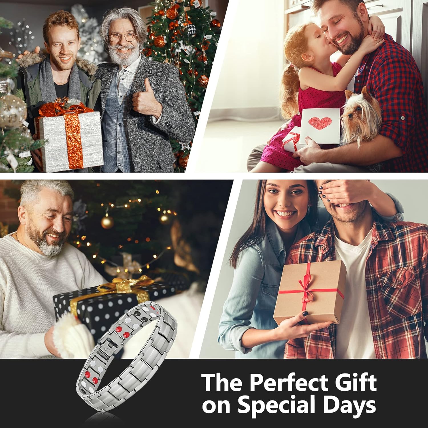 Crafted from premium titanium steel, it is hypoallergenic, scratch-resistant, and finished with long-lasting Silver IP vacuum plating. The strong clasp ensures secure wear throughout the day. The bracelet comes with everything needed for easy adjustment at home and arrives in a premium gift box, making it a perfect gift for any occasion.