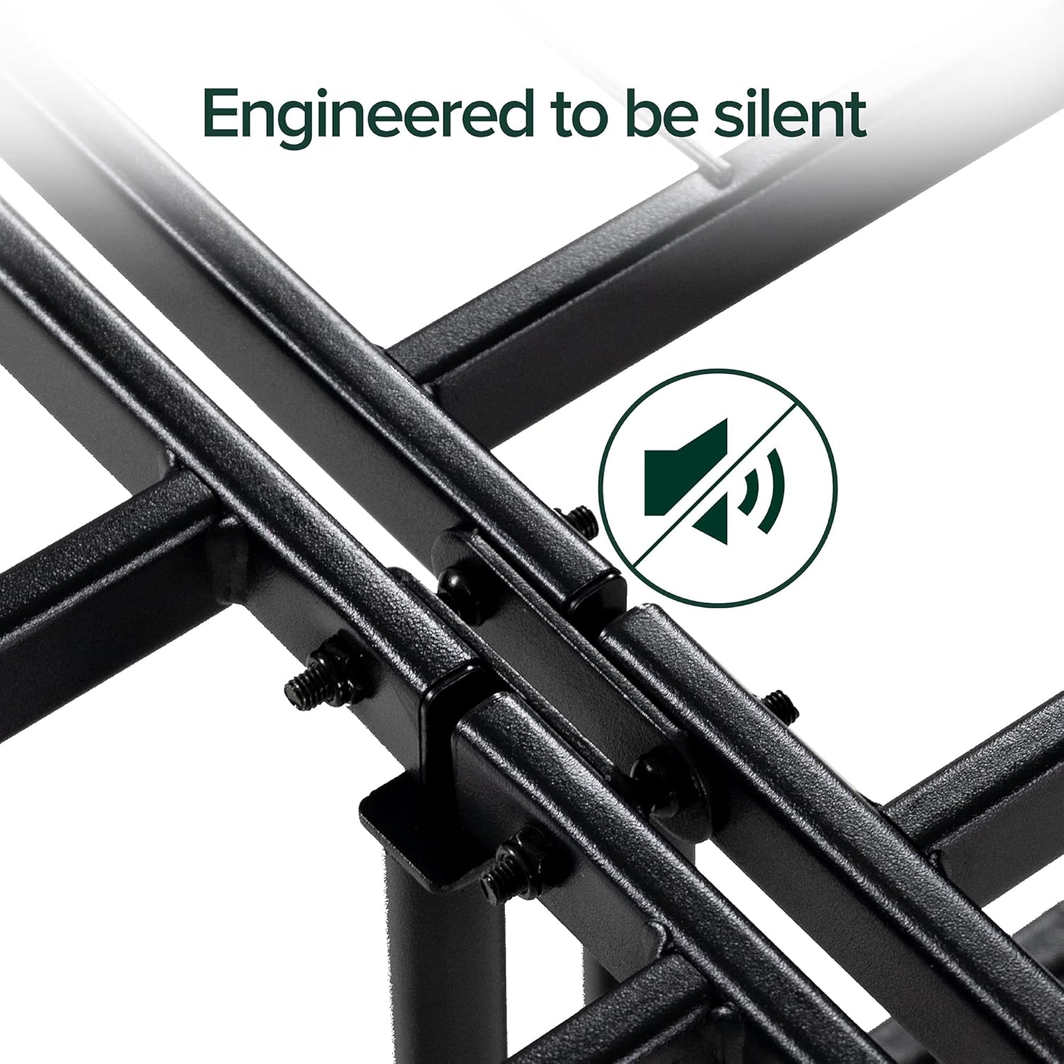 Simplify your bedroom setup with our all-in-one SmartBase bed frame, a perfect solution that combines the function of both a bed frame and box spring. Made from durable steel, this sturdy platform provides optimal support for memory foam or spring mattresses without the need for a separate box spring. With 13 inches of clearance underneath, it offers valuable storage space for extra items. The SmartBase is designed for quick and easy tool-free assembly and can support up to 1500 pounds, ensuring a stable and secure base for a great night’s sleep.