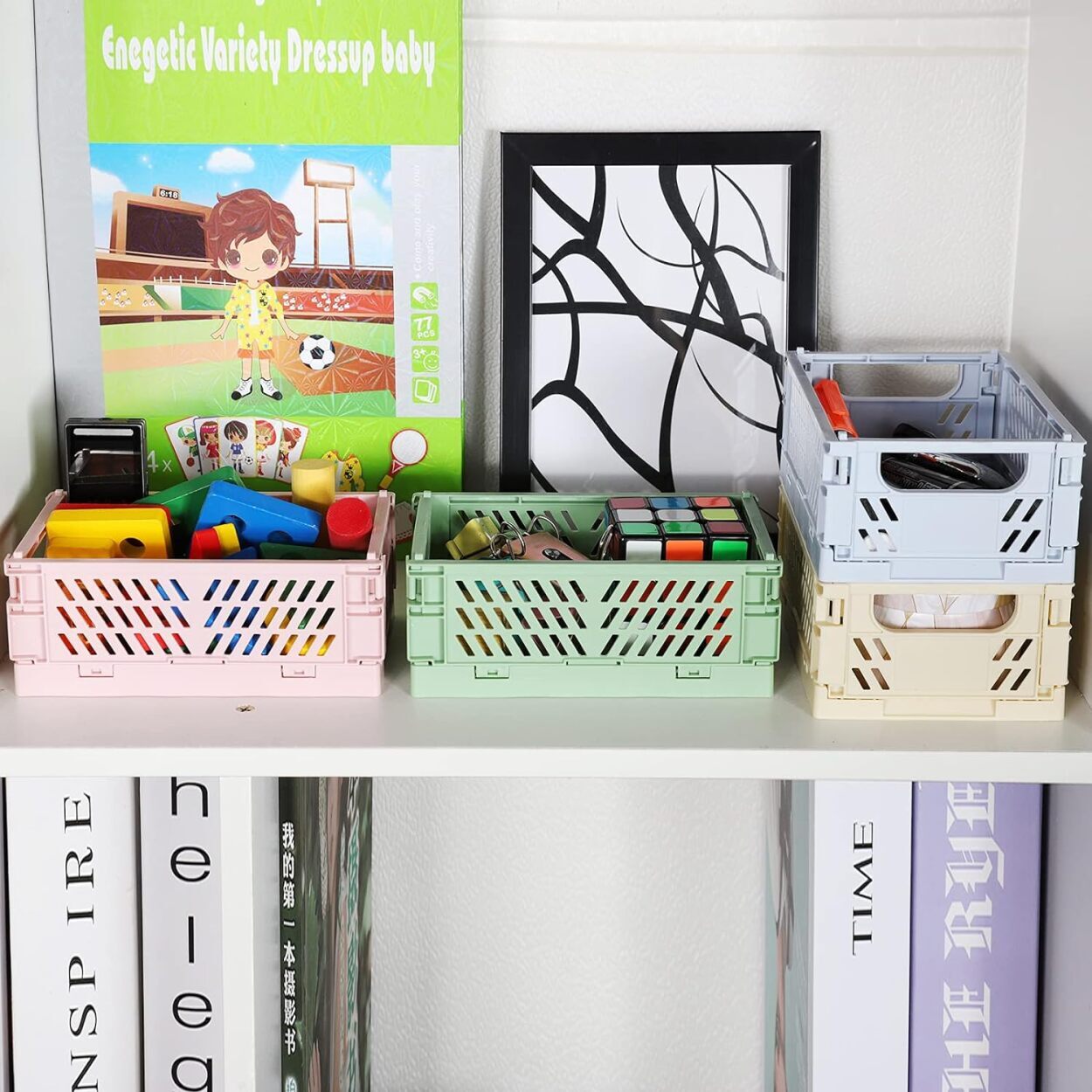 Mini Plastic Baskets Shelf Organizing Folding Storage Bin, 4pk