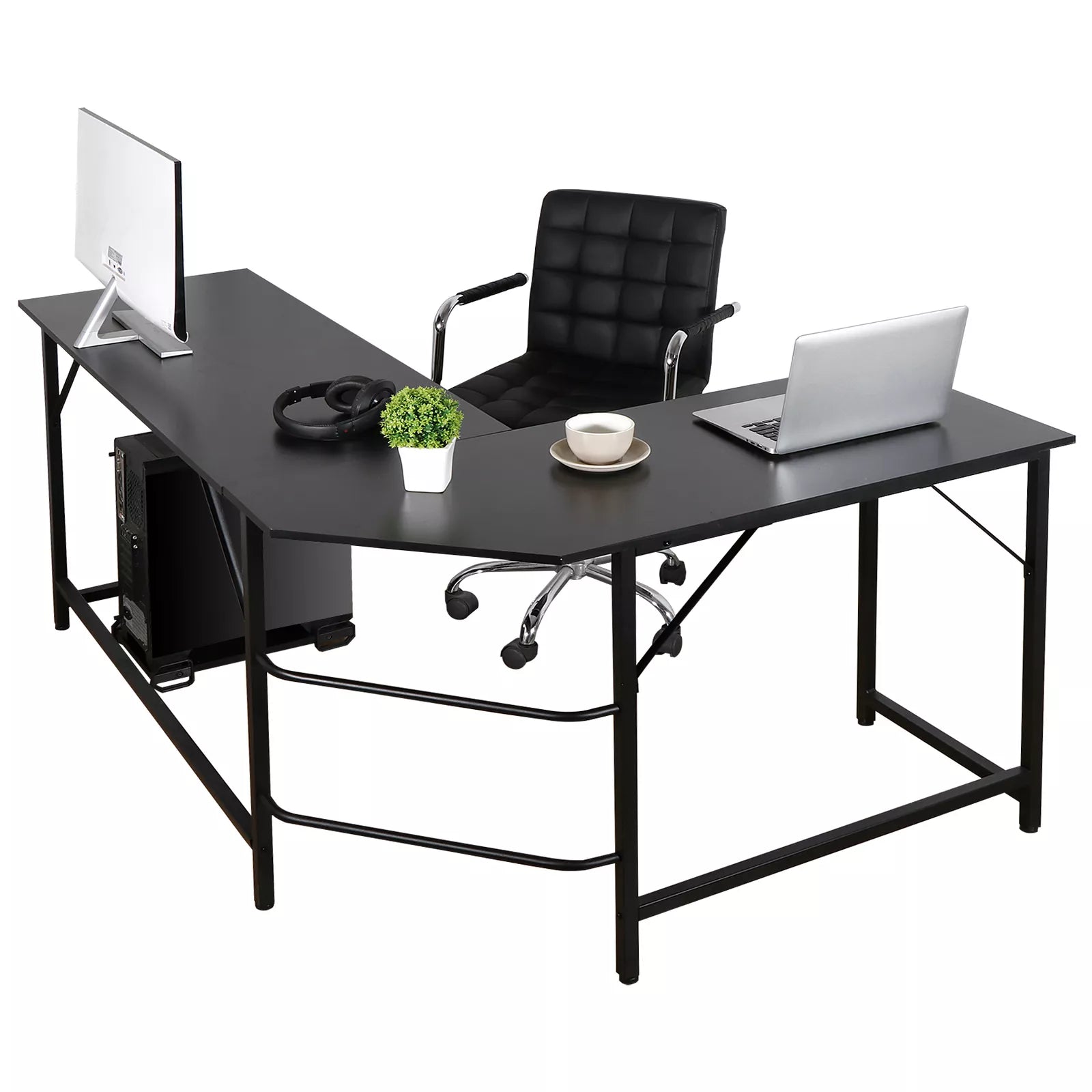 L shaped corner design, fits perfectly in a corner to maximize your limited space. If you have multiple laptops or several monitors and still need to make room for writing, then this L-shaped desk is definitely a perfect desk for you.