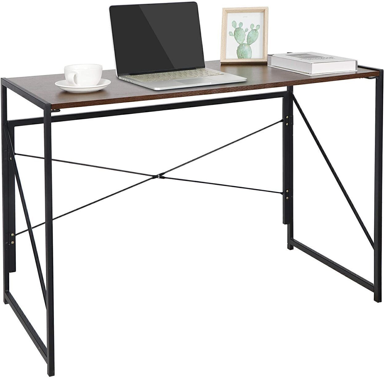 Modern Office Desk Folding Writing Study Wood Metal Desk, Brown