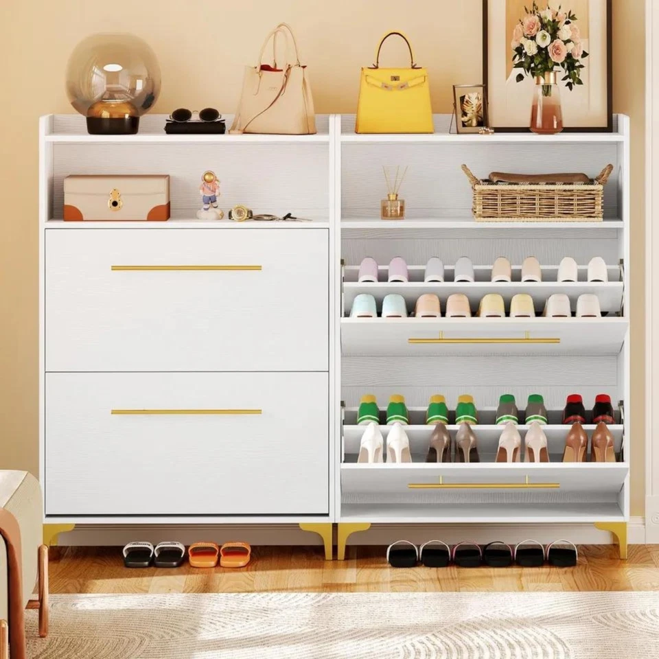 Modern Shoe Cabinet Entryway Shoes Organizer w/ 2 Flip Drawers
