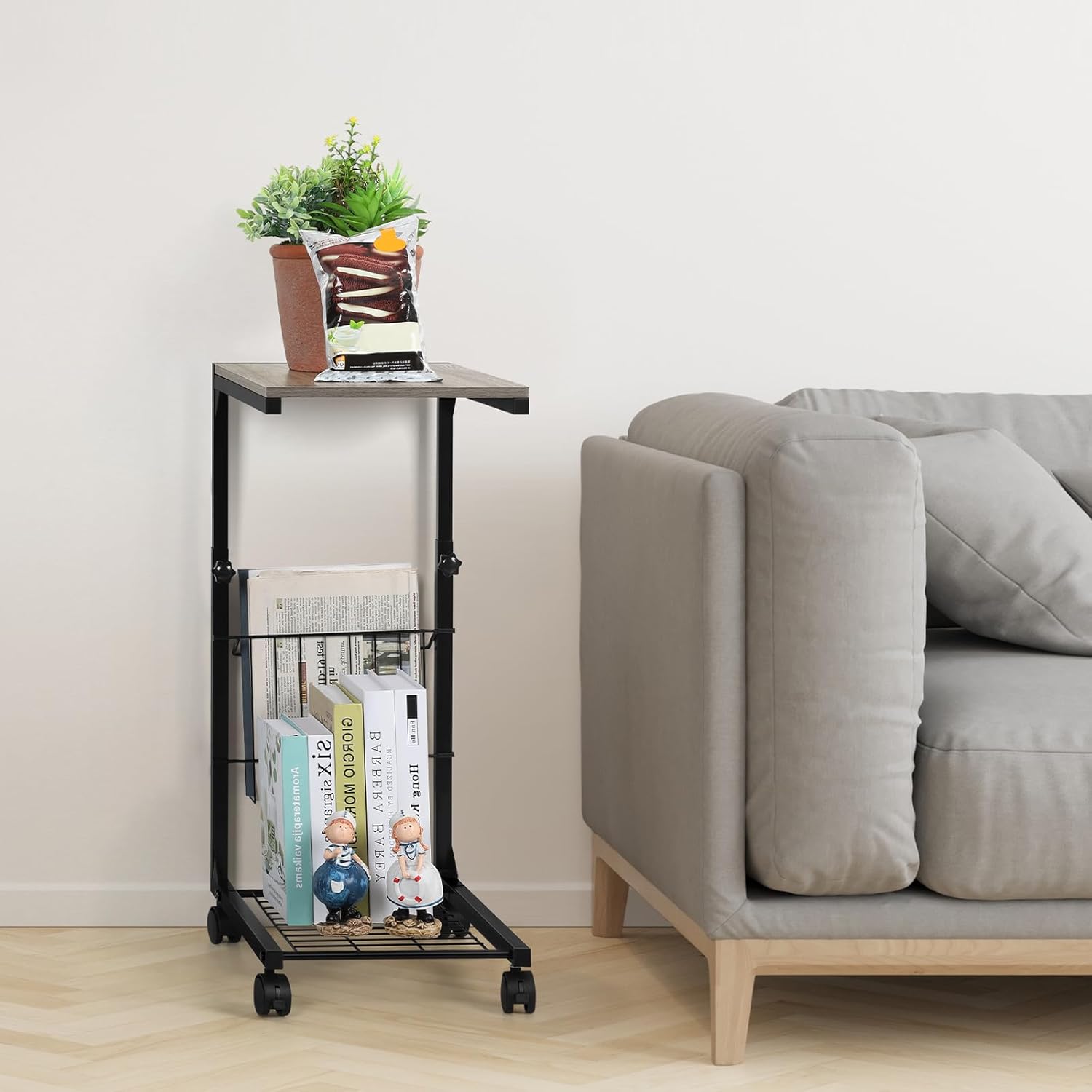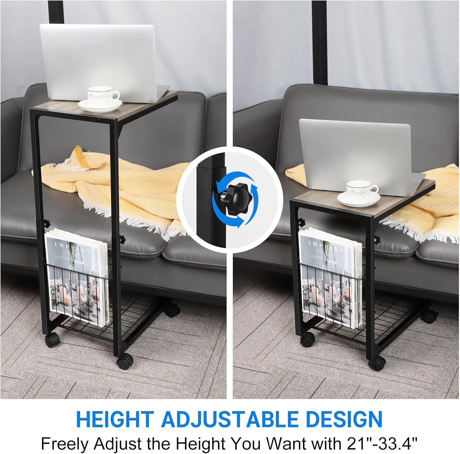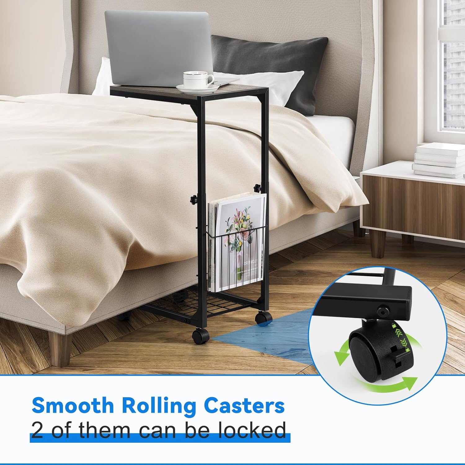 Height Adjustable Snack Table, Side End Table with Rolling Wheels, Slide Next to Sofa, Couch, Bed, Perfect for Small Space.