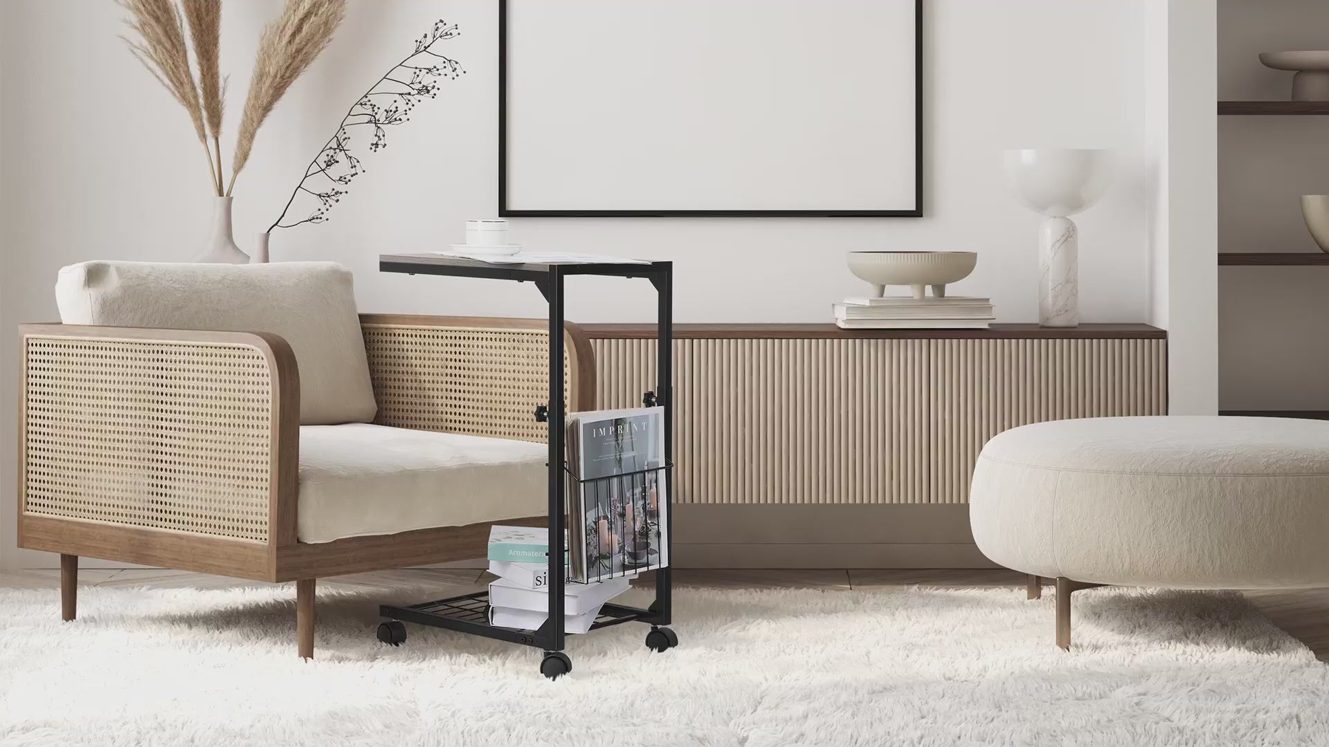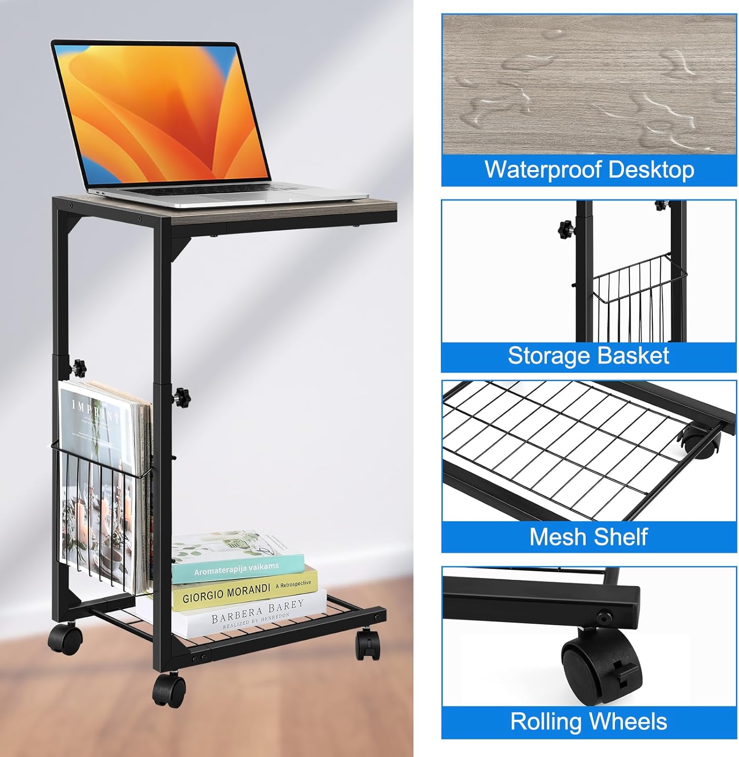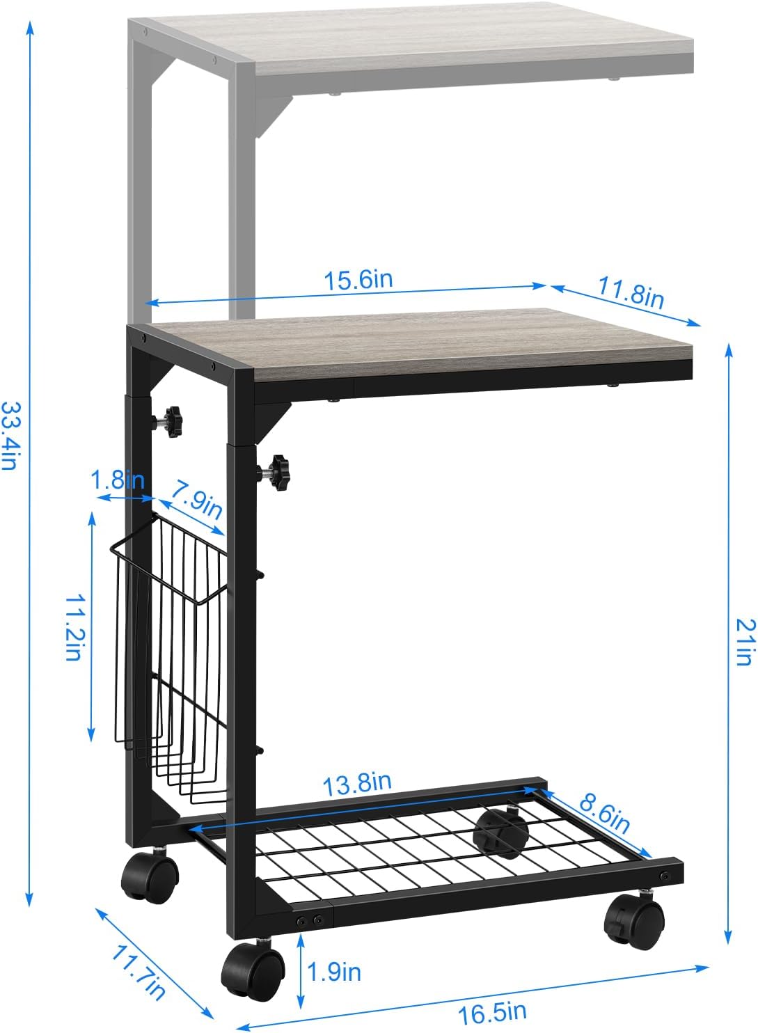 Height Adjustable Snack Table, Side End Table with Rolling Wheels, Slide Next to Sofa, Couch, Bed, Perfect for Small Space.