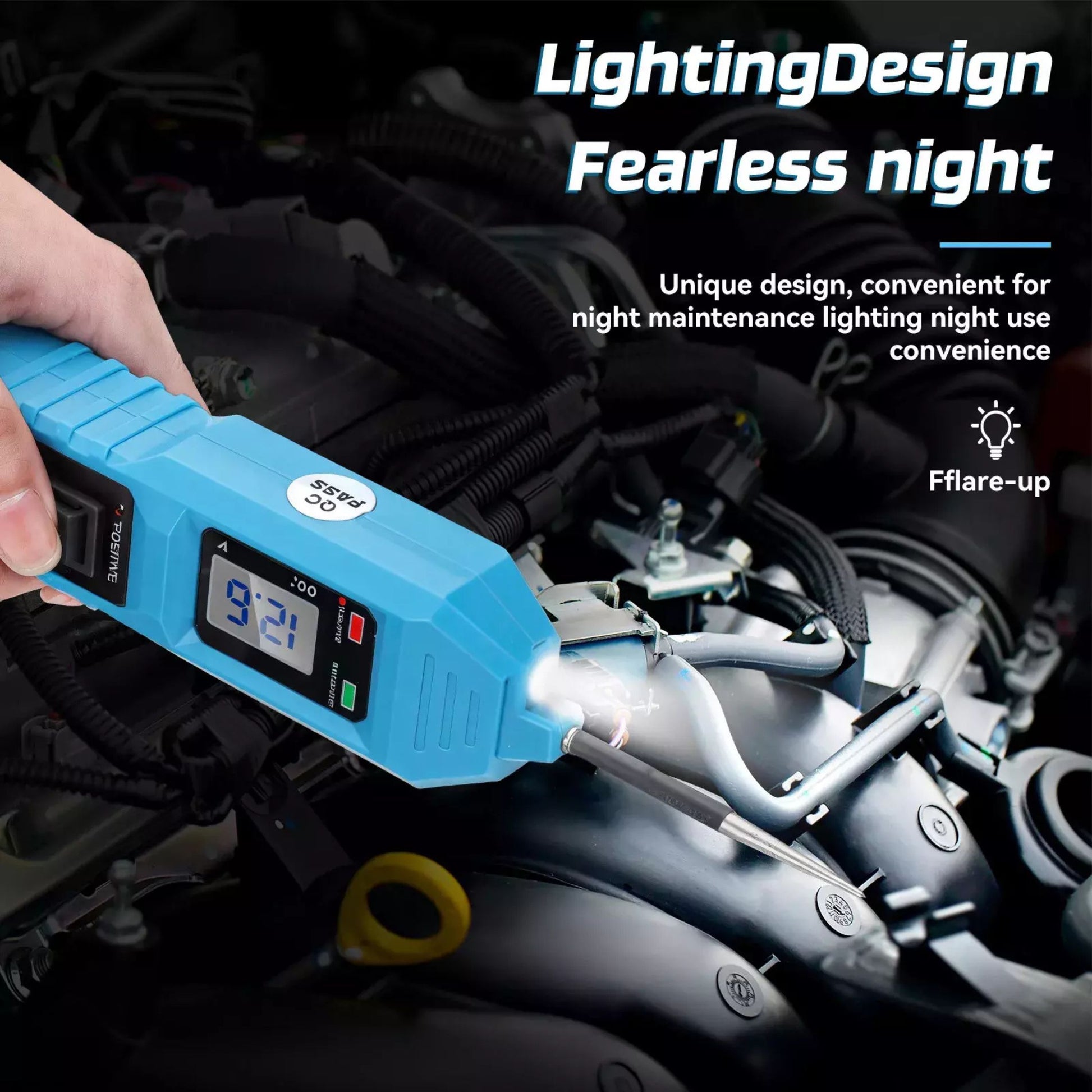 Built with user convenience in mind, the kit includes a bright blue LCD voltage readout and integrated LED lighting for clear visibility in dimly lit engine bays. Audible beeps and overload protection keep you informed and protected throughout the testing process. The probe tip and ground lead allow you to activate or test components—fans, relays, starter motors—before installation, saving time and preventing unexpected failures.