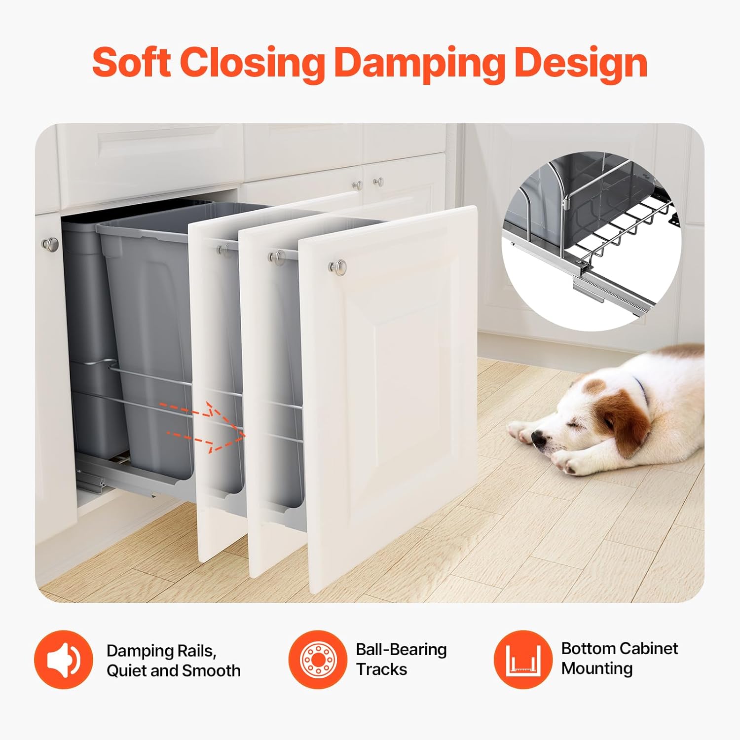 Pullout Trash Can Dual 35Qt Bin With Soft Close Sliding System