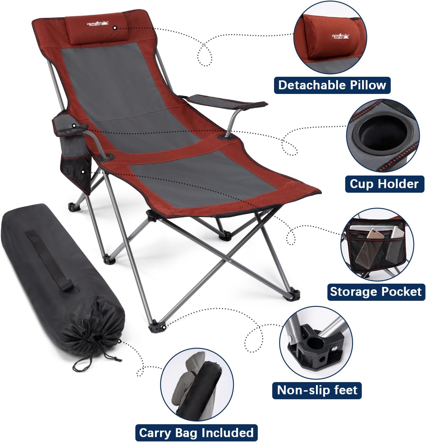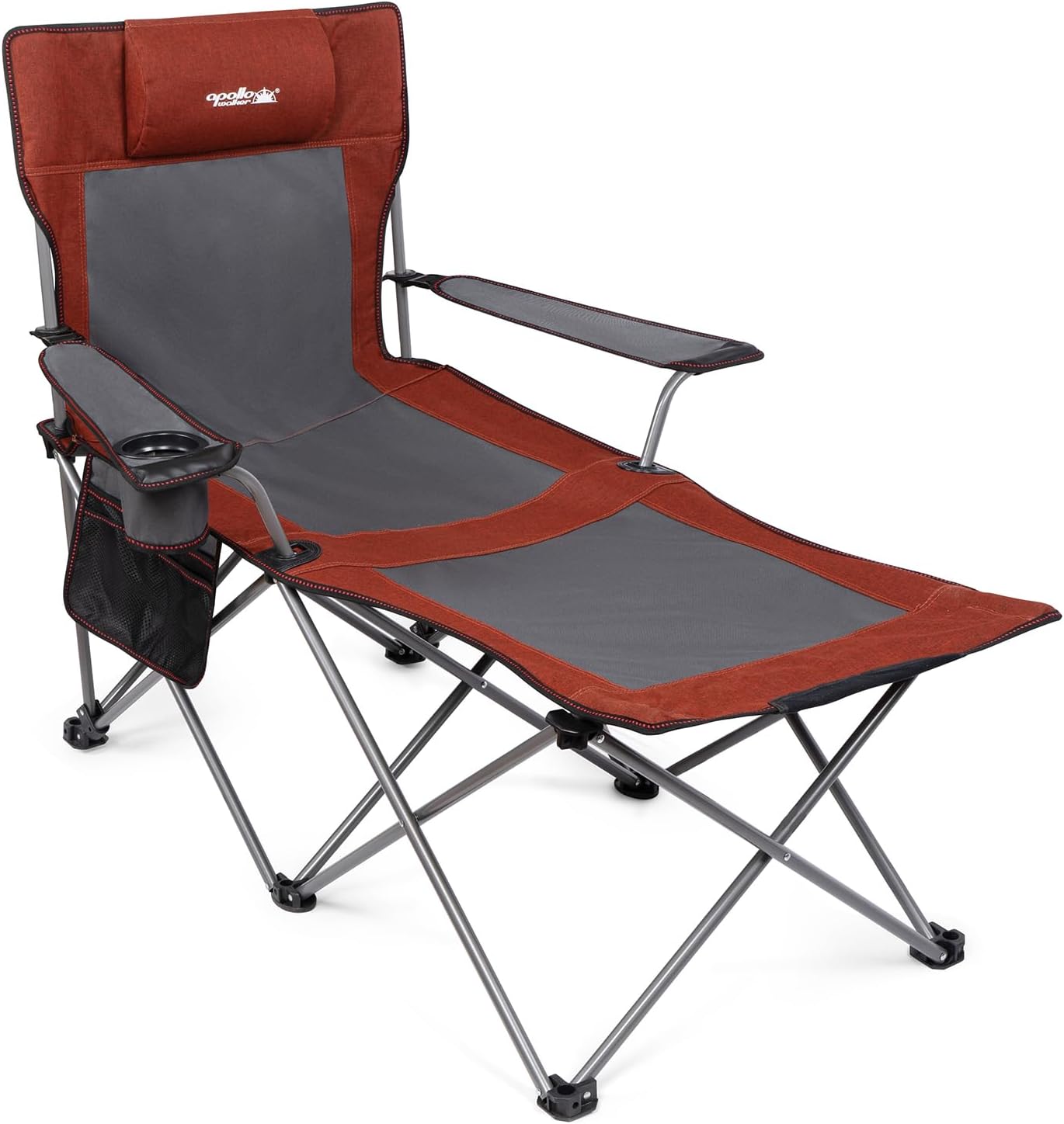 Reclining Lounge Camping Beach Folding Chair W/Foot Rest, Red