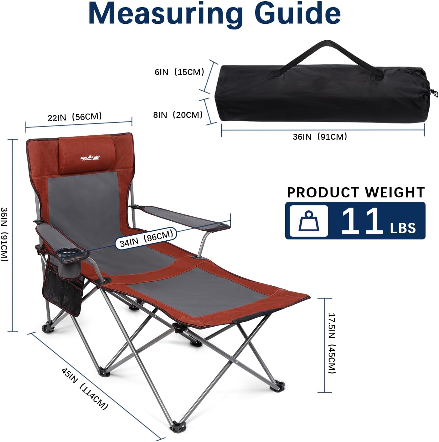 For added convenience, the chair includes a removable pillow, a side cup holder, and pockets for your phone, snacks, or personal items. It folds down easily to a compact 35.5" x 6" x 8" size, weighs only 11 lbs, and comes with a carry bag—making it the ideal companion for travel, camping, fishing, and more.