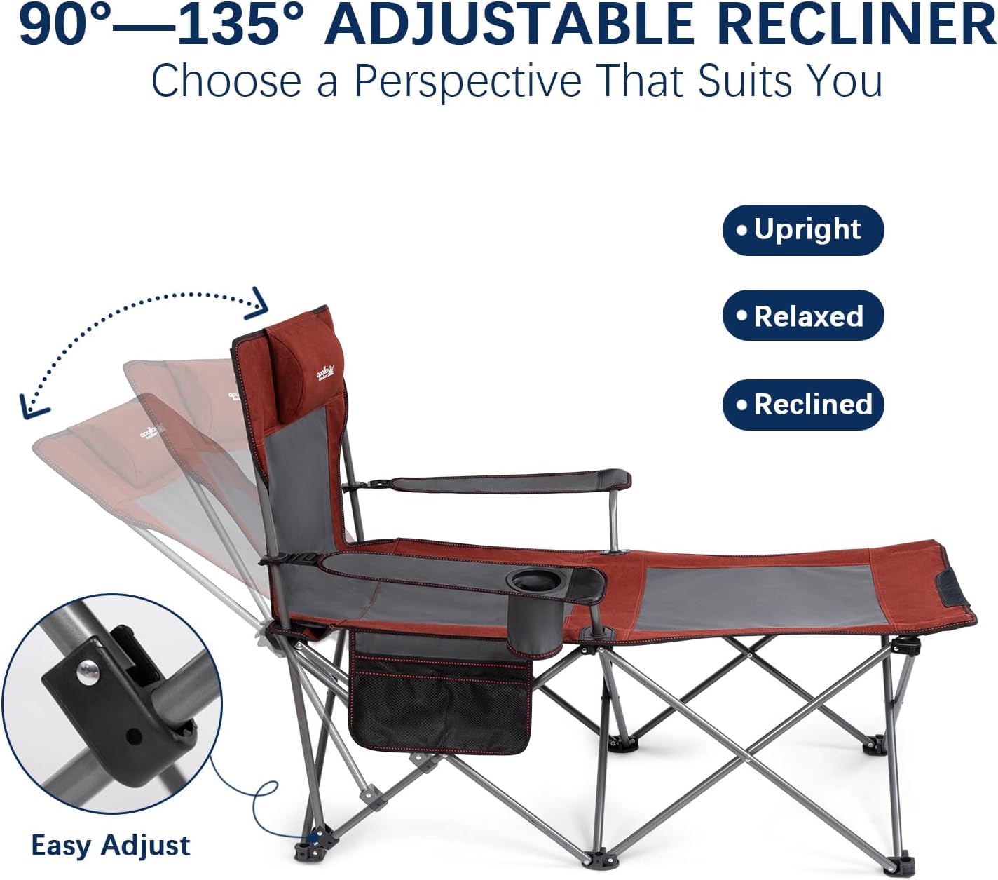 Experience comfort and durability with this ergonomically designed reclining camping chair. Featuring a 90–135° adjustable backrest, it allows you to customize your seating angle for optimal relaxation. Whether you're lounging at the beach, relaxing at a campsite, or taking a quick nap in your garden, this chair provides stable back and leg support to keep you comfortable for hours.