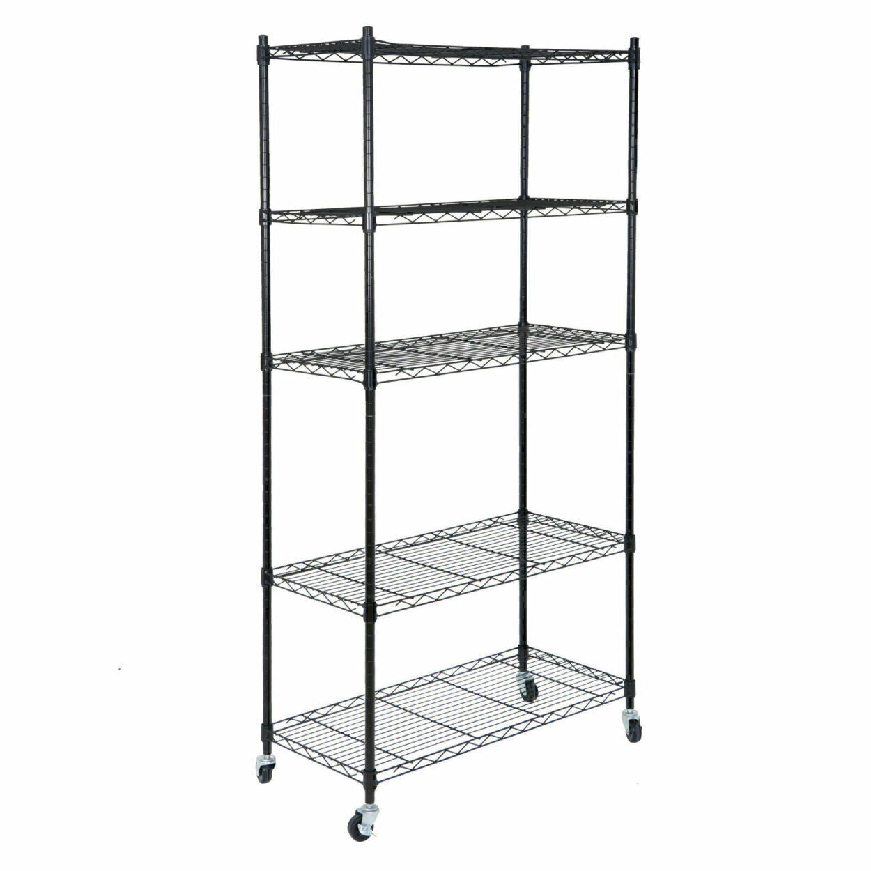 Rolling 5-Tier Shelves Wire Rack Large Space Storage Rack Organizer
