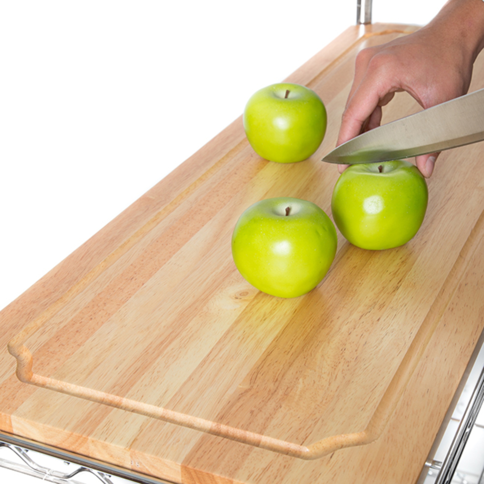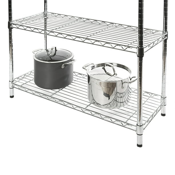 Enhance your home with the Seville Classics Baker's Rack for Kitchens. Our bakers rack is constructed with industrial-strength steel wire and UltraZinc plating for strength and longevity. Prepare meals on solid rubberwood removable table top. Top measures .75 inches thick and can be used as a cutting board as well as a place to store commonly used kitchen appliances. Rack features three height-adjustable shelves on the bottom that can be adjusted at 1-inch increments.