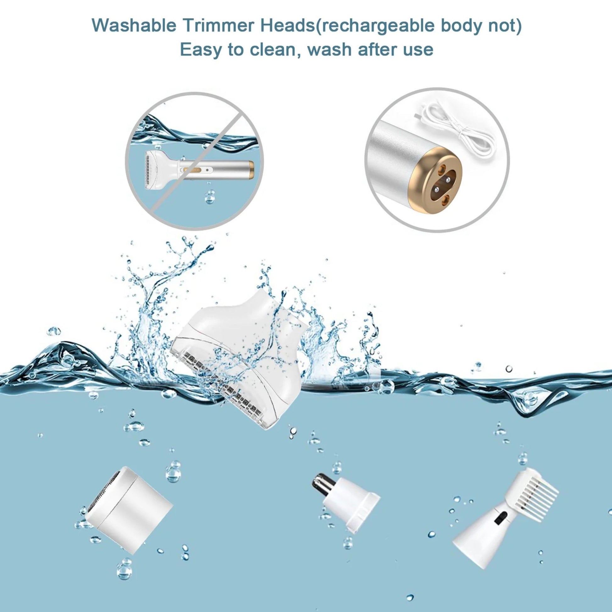 This unisex electric shaver for men and women comes with 4 different trimmer heads, heads is washable, waterproof, but not rinsing the main body in water. When you finish hair remove, you can twist and take off conveniently the blade for cleaning and maintenance.