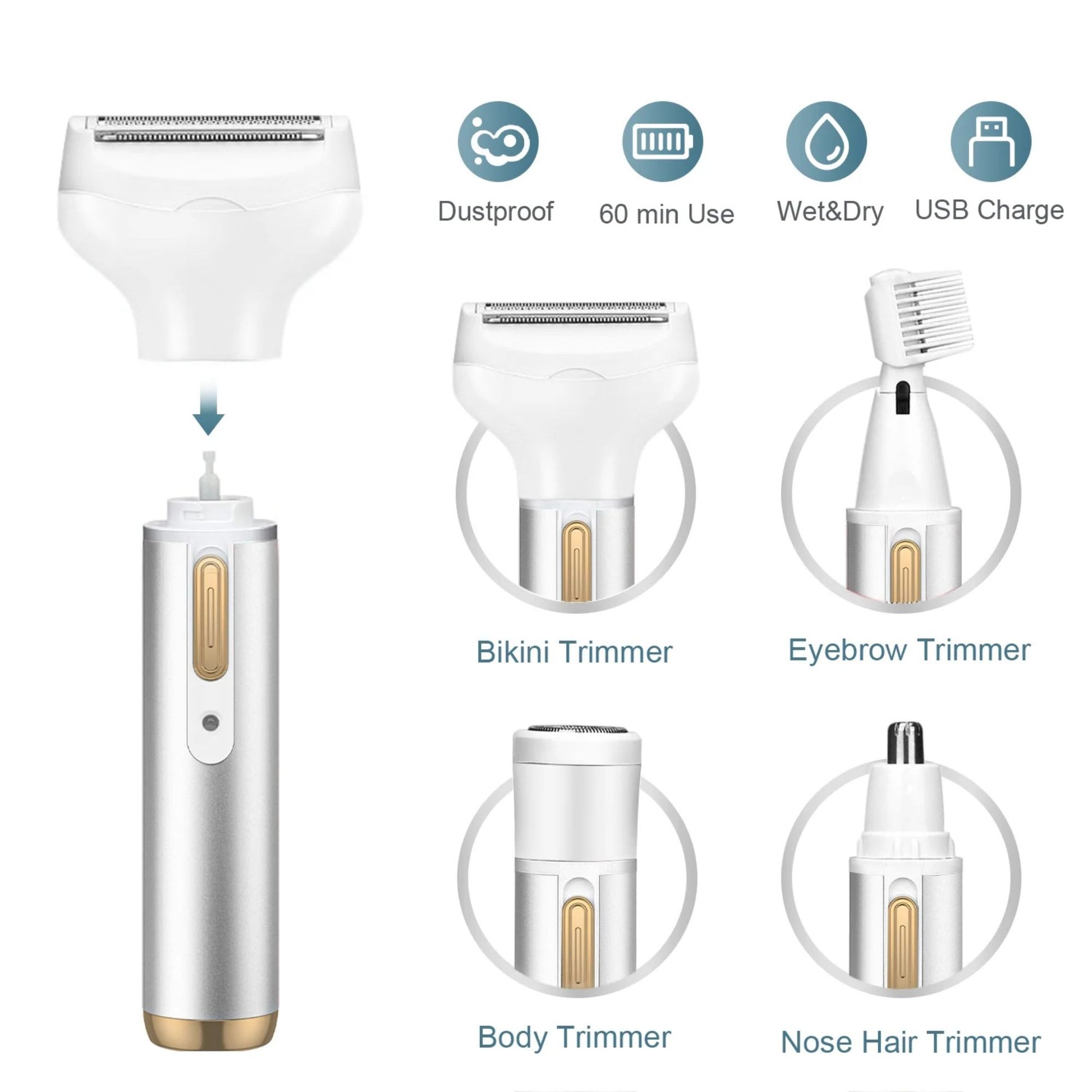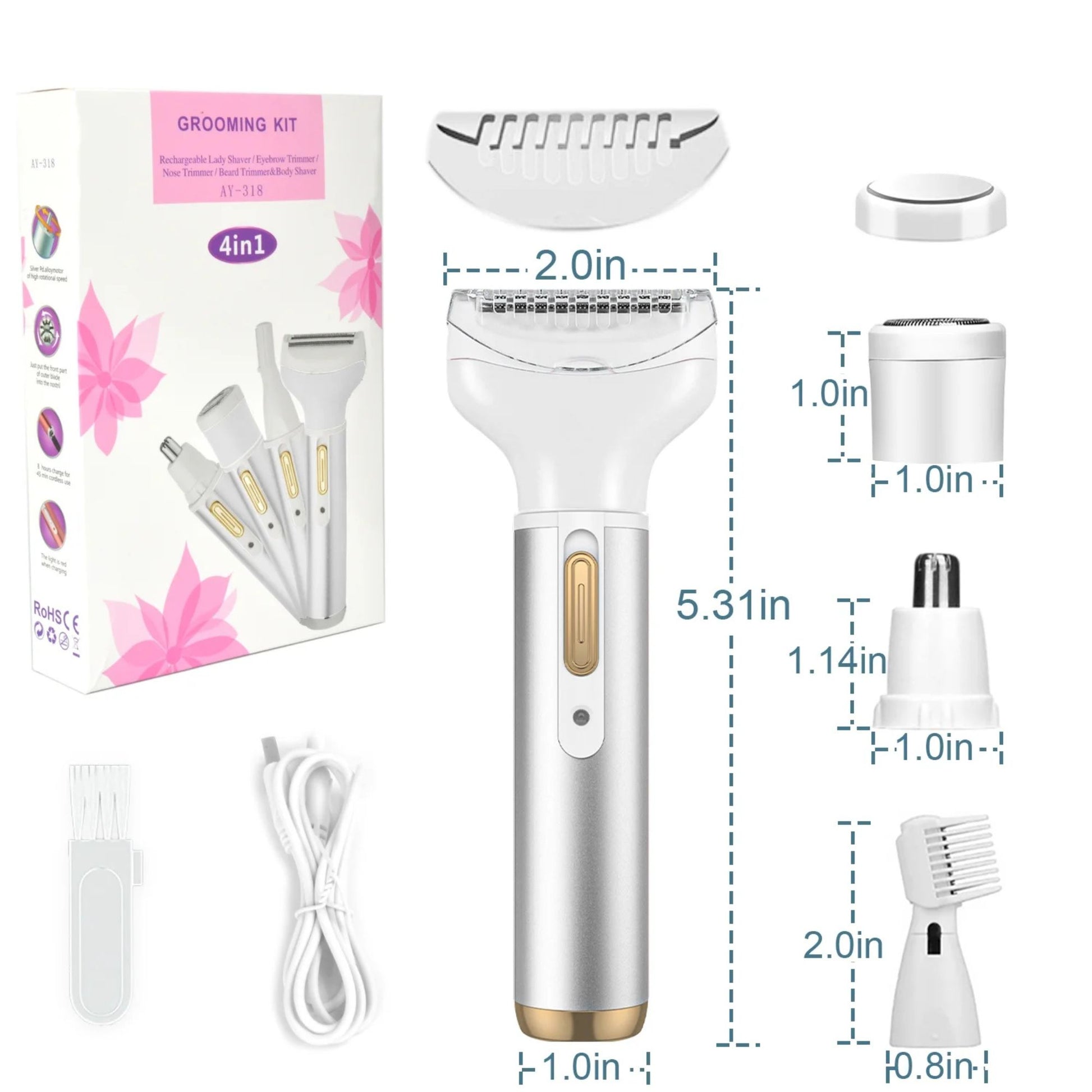Women 4 IN 1 Grooming Kit Remover Nose Bikini Trimmer, Silver