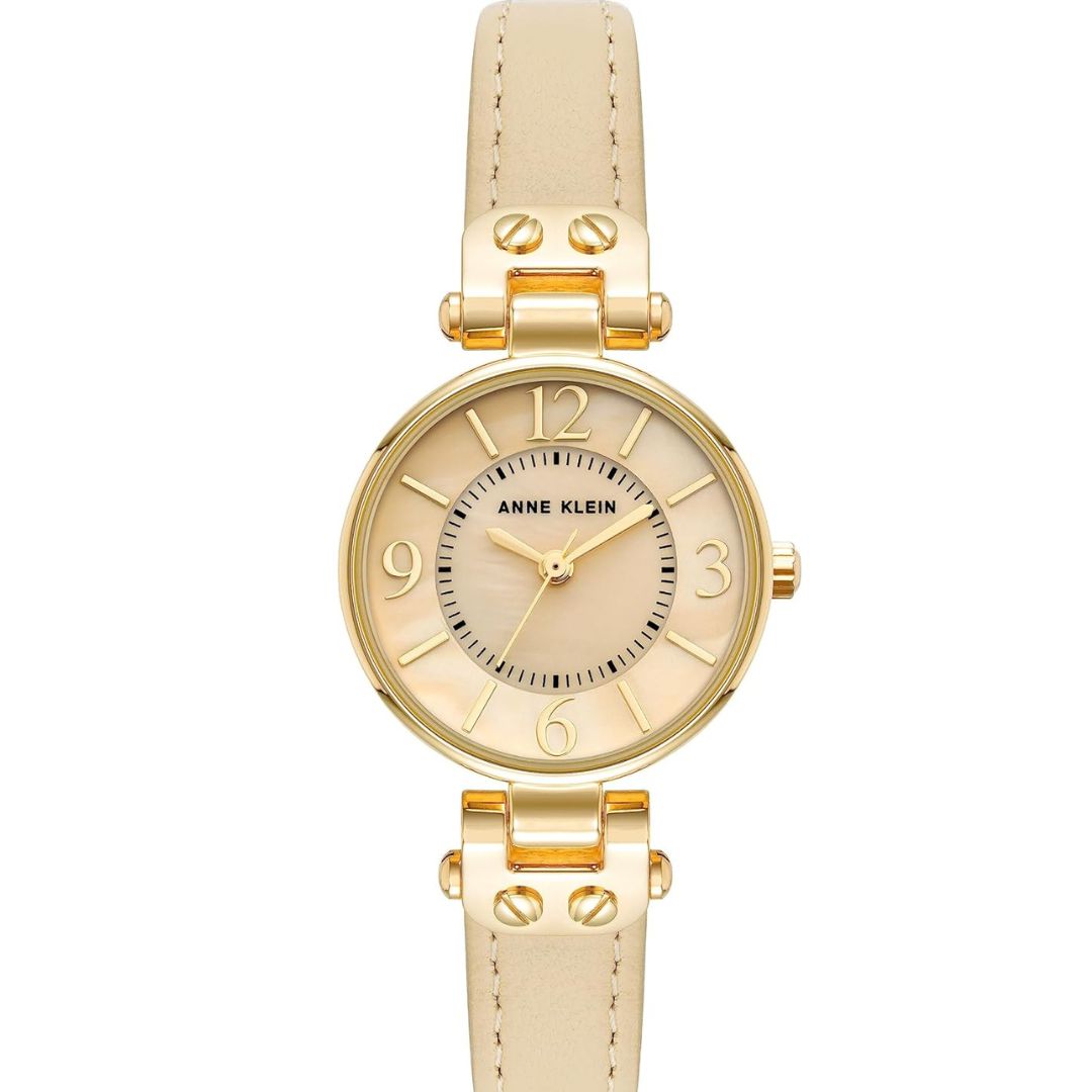 Women Watch Round Case Analog Dial Leather Strap Watch, Gold